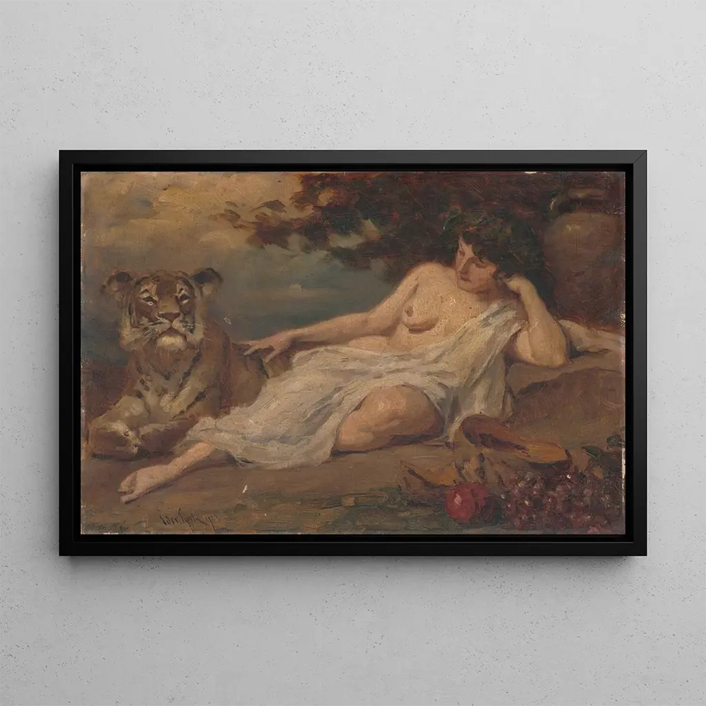 Acte féminin avec tigre : una danza entre la fuerza y la delicadeza. La obra "Acte féminin avec tigre" de Julius Lederer es una representación impactante de la feminidad y la potencia animal. La tela presenta a una mujer, con una postura graciosa, rodeada de un tigre majestuoso. Los colores cálidos y los contrastes llamativos crean una atmósfera a la vez sensual e intrigante. La técnica de Lederer, que combina el realismo con un toque de expresionismo, da vida a esta composición audaz. Cada detalle, desde los rasgos delicados del rostro de la mujer hasta los patrones feroces del tigre, evoca una armonía entre el hombre y la naturaleza salvaje. Julius Lederer : un artista en el cruce de influencias. Julius Lederer, activo a principios del siglo XX, es un artista cuyo trabajo refleja las tensiones y evoluciones de su época. Influenciado por el movimiento Art Nouveau y las corrientes simbolistas, Lederer explora temas de sensualidad y naturaleza. Sus obras, a menudo pobladas de figuras femeninas y animales, revelan una fascinación por la belleza y la fuerza. "Acte féminin avec tigre" encarna esta dualidad, donde la mujer y el tigre se encuentran en una danza visual. Esta pieza testimonia la importancia de Lederer en el panorama artístico de su tiempo, manteniéndose relevante hoy en día. Una adquisición decorativa con múltiples ventajas. La impresión artística de "Acte féminin avec tigre" es una adición cautivadora a su decoración interior, ya sea en una sala, una oficina o un dormitorio. Su estética audaz y sus colores vibrantes atraen la mirada y generan conversación. La calidad de la impresión artística asegura una fidelidad notable a la obra original, permitiendo saborear cada detalle con admiración. Al integrar este cuadro en su espacio, aporta un toque de arte que evoca a la vez la fuerza y la belleza, enriqueciendo su entorno de manera única.