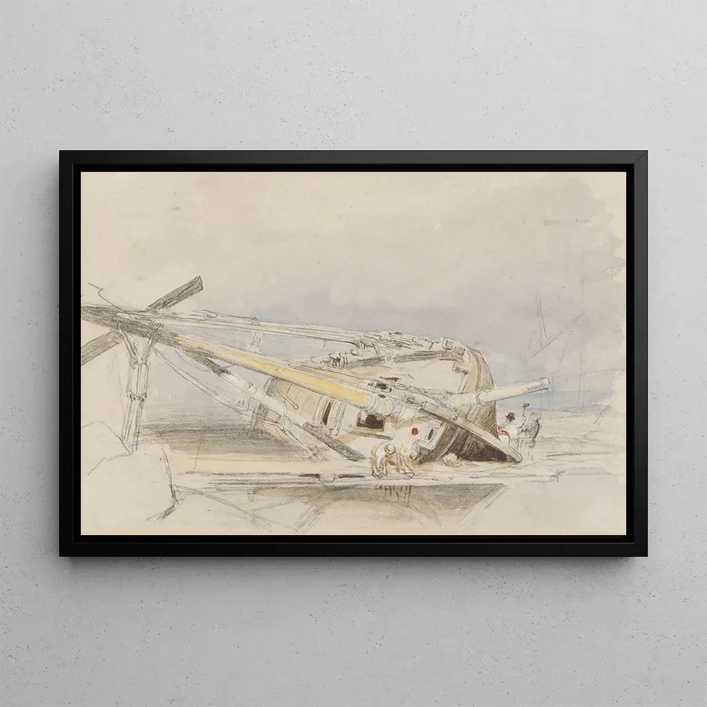 Bateau échoué : una escena de desolación marítima La obra "Bateau échoué" de Clarkson Stanfield evoca una atmósfera melancólica donde la naturaleza recupera sus derechos sobre el hombre. En este lienzo, predominan colores oscuros y matices de gris, creando un contraste impactante con los destellos de luz que atraviesan las nubes. La composición destaca un navío varado en una playa, rodeado de olas tumultuosas y rocas, simbolizando la lucha entre el hombre y las fuerzas del mar. La técnica de Stanfield, que combina realismo y romanticismo, invita al espectador a sentir la potencia de la naturaleza mientras contempla la fragilidad de la existencia humana. Clarkson Stanfield : un maestro del paisaje marino Clarkson Stanfield, activo en el siglo XIX, es reconocido por sus representaciones marítimas que capturan la belleza y la peligrosidad de los mares. Influenciado por el movimiento romántico, supo combinar técnica precisa y sensibilidad emocional. Su trabajo se inscribe en una época en la que la pintura de paisaje experimenta un auge, y se distingue por su capacidad para transmitir atmósferas dramáticas. Stanfield también fue pintor de escenas para el teatro, lo que enriqueció su enfoque visual. Sus obras, entre ellas "Bateau échoué", testimonian la importancia del mar en el imaginario colectivo de su tiempo. Una adquisición decorativa con múltiples ventajas La impresión artística de "Bateau échoué" es una pieza decorativa que enriquecerá su interior, ya sea en una sala de estar, una oficina o un dormitorio. Su calidad de impresión fiel permite sentir toda la profundidad y textura de la obra original, aportando además un toque de elegancia a su decoración. Este cuadro, con su atractivo estético indiscutible, invita a la reflexión y a la evasión, haciendo de cada mirada un nuevo descubrimiento. Ofrezca a su espacio una atmósfera única con esta obra que combina arte y emoción.