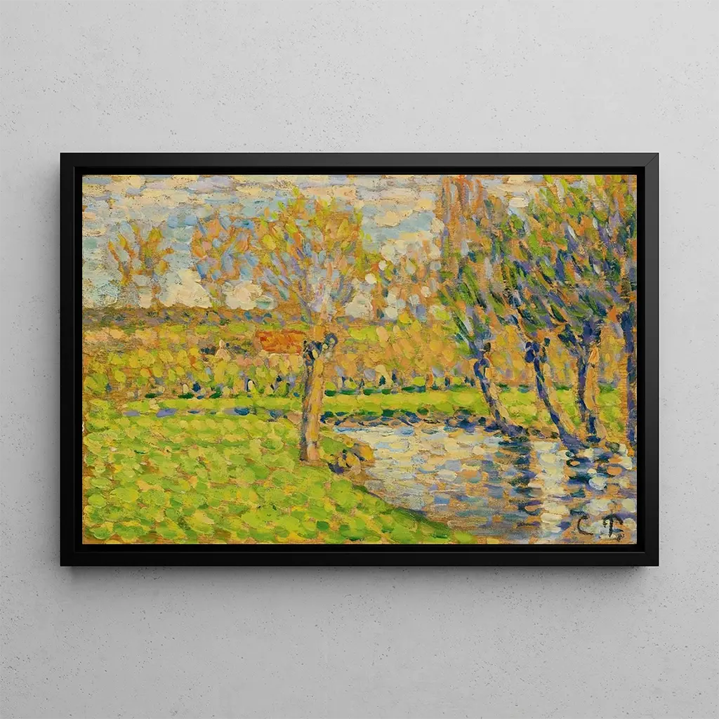 Camille Pissarro, nacido en 1830, es uno de los fundadores del movimiento impresionista. Su obra está marcada por una profunda conexión con la naturaleza y un deseo de capturar el instante. Influenciado por artistas como Monet y Cézanne, Pissarro supo desarrollar un estilo único que combina realismo e impresión. "Bords de l'Epte, Éragny" ilustra perfectamente su enfoque, destacando la luz y el color, mientras refleja su compromiso con la representación de la vida rural.