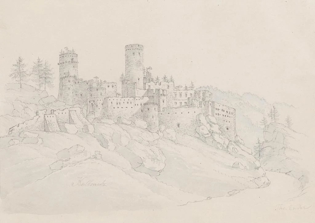 Thomas Ender, pintor austriaco del siglo XIX, es reconocido por sus obras que celebran la belleza de los paisajes europeos. Formado en el contexto del romanticismo, supo combinar realismo e idealización en sus representaciones. Ender viajó por Austria y más allá, inspirándose en los paisajes pintorescos que encontró. Su estilo, caracterizado por colores vibrantes y una atención meticulosa a los detalles, influyó en muchos artistas de su tiempo. La "Château de Kollmitz" es un ejemplo perfecto de su talento para capturar la magia de los lugares históricos.