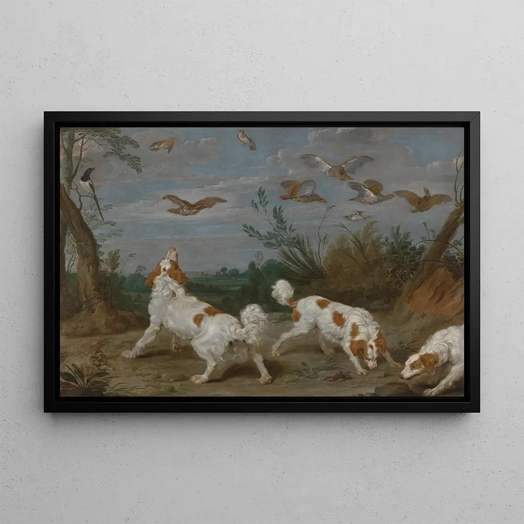 La impresión artística de Chasse à la Perdrix de Jan Wildens evoca una escena de caza vibrante, donde la naturaleza y el hombre se encuentran en un ballet de movimiento y color. Los tonos cálidos y terrosos, típicos del barroco flamenco, se mezclan con detalles minuciosos que dan vida a los personajes y a su entorno. La técnica de Wildens, que utiliza la luz para acentuar las formas y las texturas, crea una atmósfera dinámica e inmersiva. Cada elemento, desde las perdices hasta los cazadores, se representa con tal precisión que casi se puede escuchar el susurro de las hojas y el canto de los pájaros.