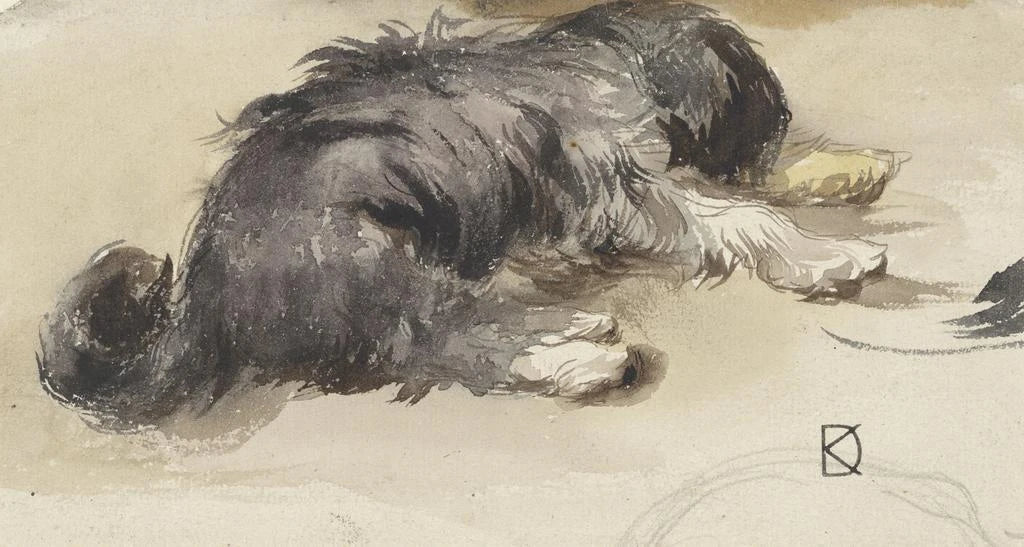 Dans cette reproduction du tableau "Chien endormi vu de dos", Johan Daniël Koelman capture la tranquillité d'un moment fugace. Le chien, paisiblement allongé, est représenté avec des couleurs douces et des nuances chaudes qui évoquent une atmosphère de calme et de réconfort. La technique de Koelman, mêlant réalisme et tendresse, permet de ressentir la chaleur du pelage de l'animal et la douceur de son sommeil. Chaque détail, du contour de l'oreille à la position des pattes, est soigneusement travaillé, invitant le spectateur à contempler la beauté simple de la vie animale.
