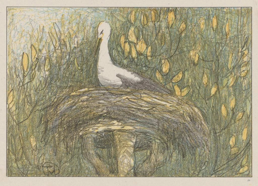 Theo van Hoytema, pintor neerlandés de principios del siglo XX, es reconocido por su enfoque único del naturalismo. Influenciado por los movimientos artísticos de su época, supo capturar la belleza del mundo natural con una sensibilidad rara. Su carrera, marcada por viajes a través de Europa, le permitió explorar diversos estilos, manteniéndose fiel a su amor por la naturaleza. "Cigüeña en el nido" se inscribe en un período en el que el arte se orientaba hacia temas más introspectivos, reflejando una búsqueda de conexión con el entorno. Hoytema dejó un legado duradero, celebrando la fauna y la flora a través de sus obras.