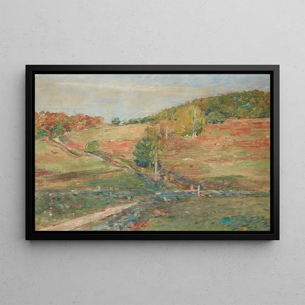 Colina de Vermont: una escapada bucólica en colores La impresión artística Colina de Vermont transporta al espectador a un paisaje idílico, donde la naturaleza florece bajo un cielo luminoso. Las tonalidades de verde de las colinas se mezclan armoniosamente con los toques de azul del cielo, creando una atmósfera serena y tranquilizadora. La técnica impresionista de Theodore Robinson se manifiesta a través de trazos de pincel fluidos, que capturan la luz y el movimiento de las hojas. Esta obra evoca una invitación a la contemplación, donde cada detalle parece respirar la tranquilidad de un día soleado. Theodore Robinson: un pionero del impresionismo estadounidense Theodore Robinson, activo a finales del siglo XIX, es considerado a menudo como uno de los primeros impresionistas estadounidenses. Influenciado por maestros franceses como Monet y Pissarro, supo desarrollar un estilo único que combina sensibilidad a la luz y el color. Robinson pasó una parte de su vida en Francia, donde asimiló las técnicas impresionistas antes de adaptarlas a sus propios paisajes estadounidenses. Su obra, aunque menos conocida que la de sus contemporáneos, jugó un papel crucial en la evolución del arte estadounidense, abriendo camino a futuros artistas. Una adquisición decorativa con múltiples ventajas La impresión artística del cuadro Colina de Vermont es una elección ideal para embellecer su interior, ya sea en una sala de estar, una oficina o un dormitorio. Su calidad de impresión garantiza fidelidad en los colores y detalles de la obra original, aportando además un toque de elegancia a su decoración. El atractivo estético de esta tela la convierte en un elemento central de su espacio, despertando la admiración de sus invitados. Al añadir esta obra a su colección, ofrece a su entorno una escapada visual hacia la belleza natural.