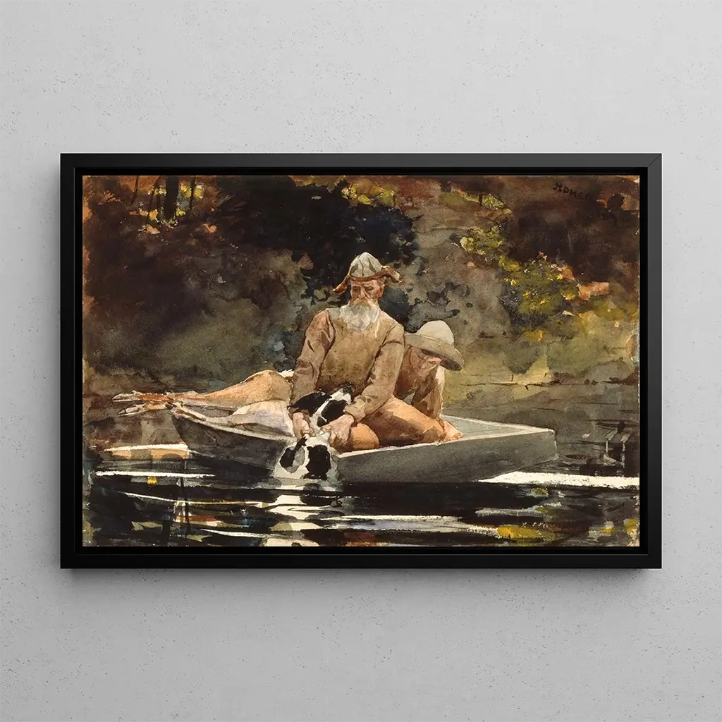 Después de la caza : una escena de vida impregnada de realismo En "Después de la caza", Winslow Homer captura un momento de tranquilidad después de la agitación de un día de caza. La composición destaca un grupo de cazadores, cuyos rostros reflejan fatiga y satisfacción, mientras que la naturaleza circundante se extiende majestuosamente. Los colores terrosos y las tonalidades de verde evocan una atmósfera a la vez serena y dinámica, donde casi se puede escuchar el susurro de las hojas y el canto de los pájaros. La técnica de la acuarela, tan apreciada por Homer, confiere a esta impresión artística una ligereza y una fluidez que hacen que la escena sea viva e inmersiva. Winslow Homer : el maestro del arte estadounidense del siglo XIX Winslow Homer, nacido en 1836, es uno de los artistas más influyentes de su época, conocido por su representación realista de la vida estadounidense. Su carrera comenzó en el campo de la ilustración, pero pronto se orientó hacia la pintura, explorando diversos temas que van desde la vida rural hasta el mar. Influenciado por el movimiento impresionista y los paisajes de la naturaleza, Homer supo capturar la esencia de la experiencia humana a través de sus obras. "Después de la caza" se inscribe en un período en el que el arte estadounidense empieza a definirse, alejándose de las influencias europeas para adoptar una identidad propia, marcando así un paso crucial en la historia del arte. Una adquisición decorativa con múltiples ventajas La impresión artística de "Después de la caza" es una elección ideal para embellecer su interior, ya sea en una sala de estar, una oficina o un dormitorio. Su calidad de impresión garantiza fidelidad en los colores y detalles de la obra original, permitiendo aportar un toque de elegancia y cultura a su decoración. Este cuadro, con su escena tranquilizadora y su ambiente nostálgico, invita a la contemplación y a la conversación, haciendo de cada mirada un momento de reflexión. Al integrar esta impresión artística en su espacio, no solo añade una obra de arte, sino que también crea un entorno inspirador y cálido.