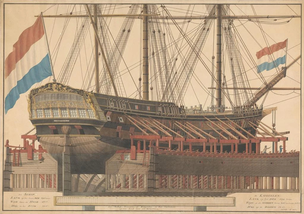 La impresión artística del navío Zoutman sobre camellos captura un momento fascinante de la historia marítima, donde el comercio y la aventura se encuentran. Esta obra representa un navío majestuoso, cargado de mercancías, mientras que los camellos se mantienen orgullosos a su lado, simbolizando el vínculo entre el mar y el desierto. Los colores vibrantes y los detalles minuciosos dan vida a esta escena dinámica, evocando el movimiento y la energía de una época en la que el comercio internacional estaba en pleno auge. La atmósfera de la obra transporta al espectador a un mundo de exploración y descubrimientos.