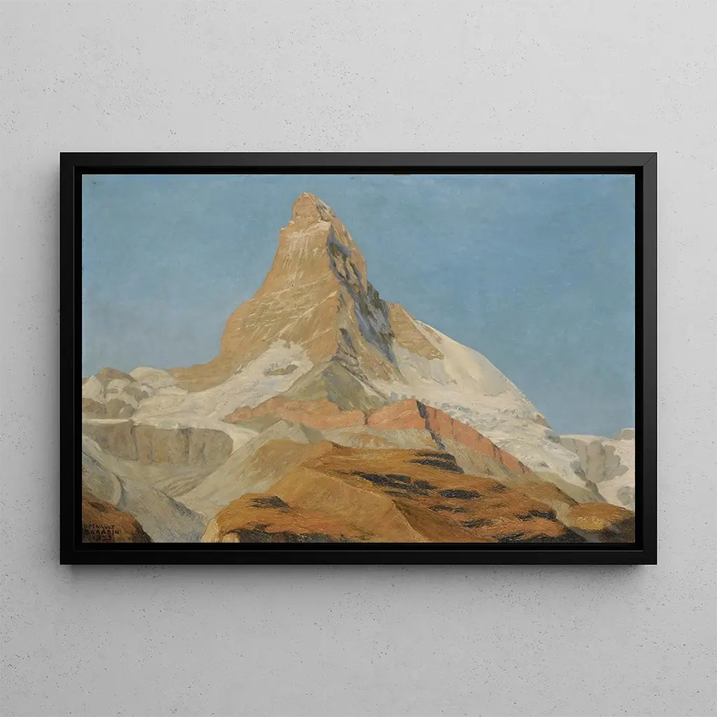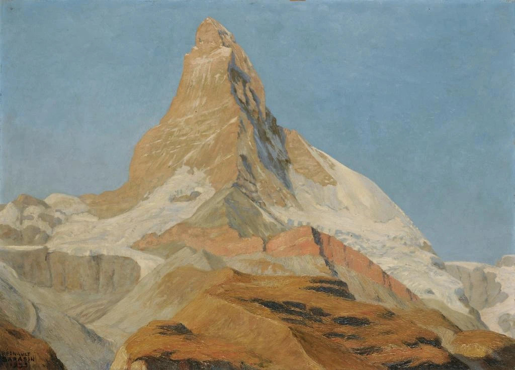 "Le Cervin" de Regnault Sarasin es una obra que captura la grandeza de las montañas suizas con una intensidad impactante. La tela reproduce el famoso pico, bañado en una luz dorada, creando un contraste llamativo entre las sombras de las rocas y la claridad del cielo. Los colores vibrantes y los detalles minuciosos revelan la maestría de Sarasin en la representación de los paisajes alpinos. La atmósfera de esta obra es a la vez majestuosa y serena, invitando al espectador a sentir la potencia de la naturaleza. Cada pincelada evoca la belleza salvaje y la inmensidad de las montañas, transportando al observador en un viaje visual inolvidable.