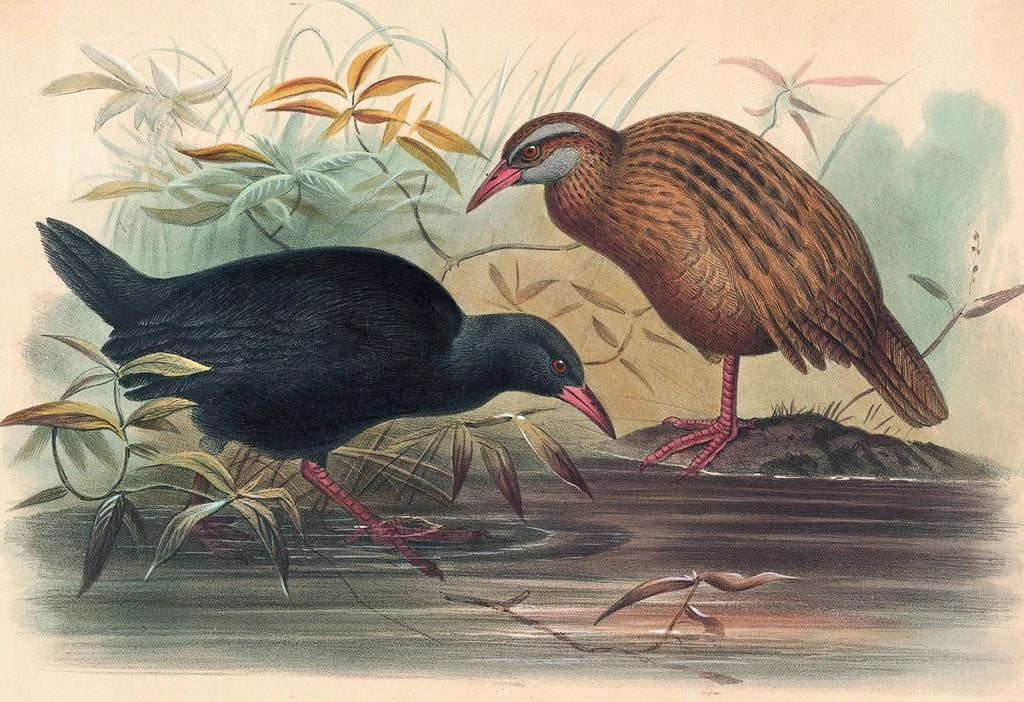 La Râle weka, pintada por Joseph Wolf, es una obra que captura la esencia misma de la fauna neozelandesa. Con colores vibrantes y una atención minuciosa a los detalles, Wolf logra inmortalizar este ave en su hábitat natural. La composición dinámica, donde la Râle se mantiene orgullosamente en medio de una vegetación exuberante, evoca una atmósfera de tranquilidad y misterio. Las tonalidades de verde y marrón dominan la obra, creando un contraste impactante con el plumaje colorido del ave. Esta impresión artística de la Râle weka es una verdadera invitación a explorar las maravillas de la naturaleza.