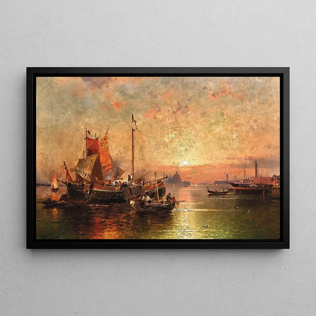 En la laguna veneciana: un viaje al corazón de Venecia Franz Richard Unterberger nos transporta con "En la laguna veneciana" a un cuadro donde la magia de Venecia se revela. Las góndolas deslizan tranquilamente sobre las aguas relucientes, mientras que los reflejos de los edificios históricos bailan en la superficie. La paleta de colores cálidos, combinando tonos dorados y azules profundos, crea una atmósfera romántica y envolvente. La técnica de óleo sobre lienzo permite a Unterberger capturar la luz y la sombra, dando vida a esta escena emblemática. Este cuadro es una verdadera invitación a explorar los encantos de la laguna y a sentir el alma de esta ciudad única. Franz Richard Unterberger: el artista de los paisajes venecianos Nacido en 1838, Franz Richard Unterberger es un pintor austríaco reconocido por sus obras inspiradas en la belleza de Venecia. Evolucionando en el siglo XIX, se inscribe en el movimiento romántico, destacando paisajes idílicos y escenas de la vida cotidiana. Influenciado por los grandes maestros de la pintura veneciana, Unterberger desarrolla un estilo caracterizado por una atención minuciosa a los detalles y un dominio de la luz. Sus obras, entre ellas "En la laguna veneciana", son apreciadas por los coleccionistas y testimonian su talento excepcional. La reproducción de esta impresión artística permite redescubrir la esencia de Venecia a través de su mirada. Una adquisición decorativa con múltiples ventajas La reproducción de "En la laguna veneciana" es una elección perfecta para enriquecer su decoración interior, ya sea en una sala de estar, una oficina o un dormitorio. Su calidad de impresión y su fidelidad a los colores y detalles de la obra original hacen de ella una adición notable a su espacio. Este cuadro evoca una atmósfera de serenidad y ensueño, además de aportar un toque de elegancia a su interior. Con su atractivo estético, esta impresión artística se integra armoniosamente en diversos estilos de decoración, haciendo de cada mirada un momento de evasión hacia los canales encantadores de Venecia.