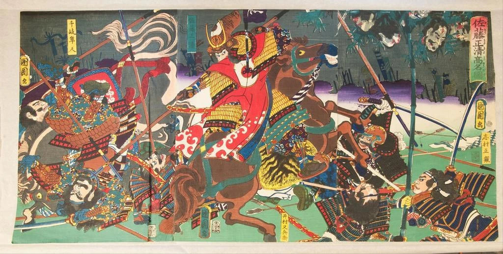 Toyohara Kunichika, actif durant la période Edo, est l'un des grands maîtres de l'estampe japonaise. Influencé par ses prédécesseurs et par l'évolution de la société japonaise, il a su adapter son style aux goûts de son époque tout en préservant l'essence de l'ukiyo-e. Ses œuvres, souvent centrées sur des acteurs de kabuki et des scènes de la vie urbaine, témoignent d'une profonde compréhension des émotions humaines. Kunichika a également été un pionnier dans l'utilisation de la couleur, apportant une nouvelle dimension à ses estampes. Son héritage perdure, influençant de nombreux artistes contemporains et fascinant les amateurs d'art à travers le monde.