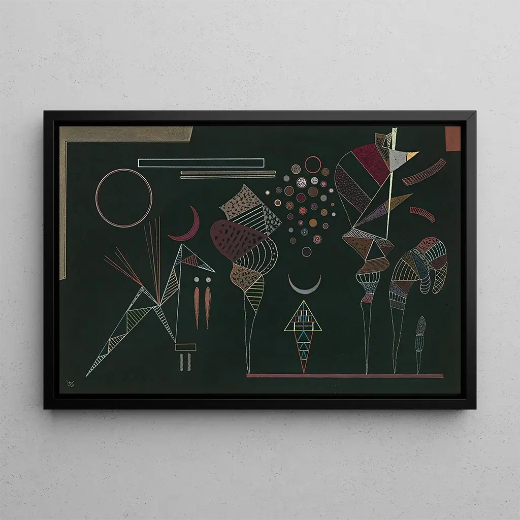 Wassily Kandinsky, figura emblemática del siglo XX, es a menudo considerado como uno de los precursores del arte abstracto. Nacido en Rusia en 1866, fue influenciado por la música, la espiritualidad y el folclore, lo que marcó profundamente su enfoque artístico. Kandinsky evolucionó a través de diferentes períodos, desde el postimpresionismo hasta la abstracción pura, y cofundó el movimiento del Bauhaus. Su trabajo, cuya «Estudio para contrastes reducidos» es un ejemplo destacado, abrió camino a muchos artistas contemporáneos, convirtiéndolo en una figura imprescindible en la historia del arte moderno.