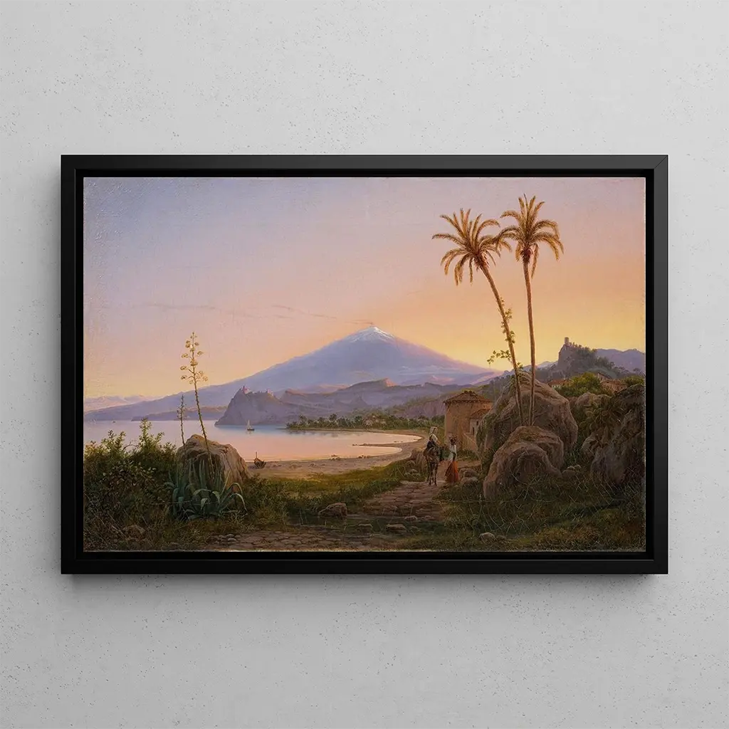 La reproduction de L'Etna au crépuscule constitue un choix décoratif idéal pour divers espaces de vie, que ce soit dans un salon, un bureau ou une chambre. Sa palette de couleurs chaleureuses et son atmosphère sereine apportent une touche d'élégance et de tranquillité à votre intérieur. La qualité de la reproduction garantit une fidélité remarquable à l'œuvre originale, permettant de profiter de son attrait esthétique sans compromis. En intégrant ce tableau dans votre décoration, vous offrez à votre espace une dimension artistique qui ne manquera pas d'éveiller l'admiration de vos invités.