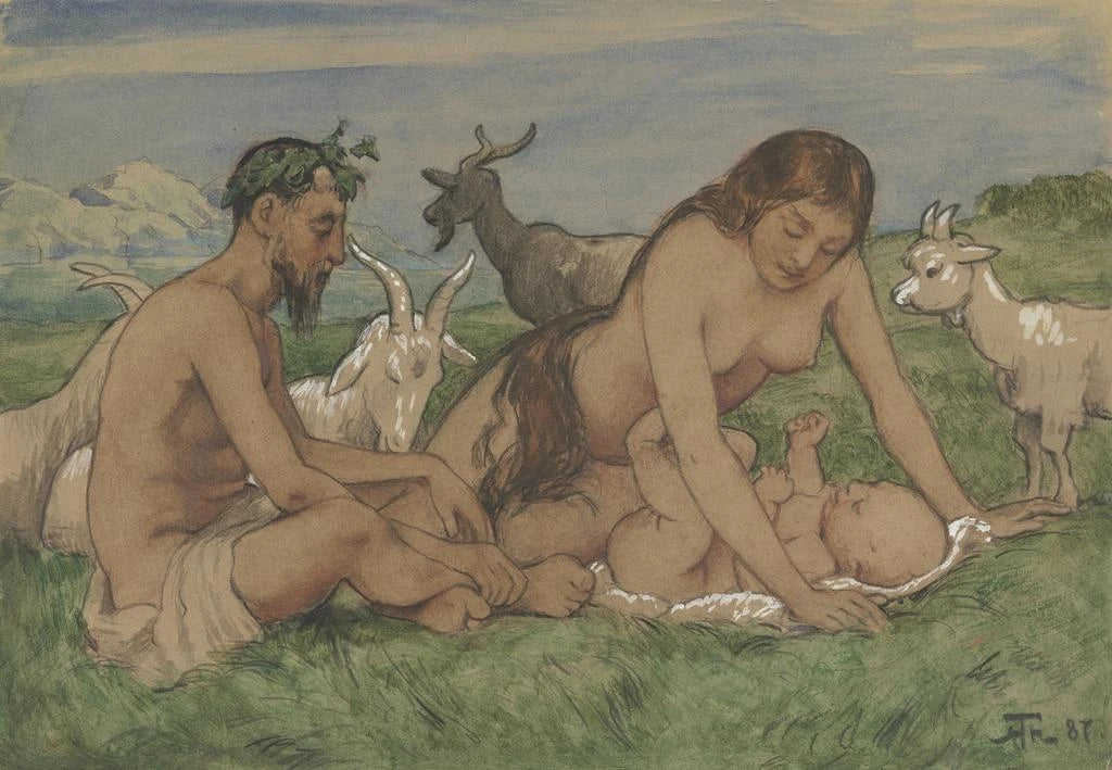 La impresión artística Famille de Faunes de Hans Thoma evoca una escena conmovedora donde las faunas, criaturas mitológicas, interactúan con suavidad y complicidad. Los colores pastel y las formas redondeadas crean una atmósfera cálida y acogedora, mientras que la luz suave ilumina los rostros de los personajes. La técnica de Thoma, que combina realismo y elementos fantásticos, da vida a esta obra, invitando al espectador a explorar un mundo donde la naturaleza y el mito se encuentran. Cada detalle, desde las hojas delicadas hasta las expresiones de las faunas, contribuye a la armonía de esta composición.