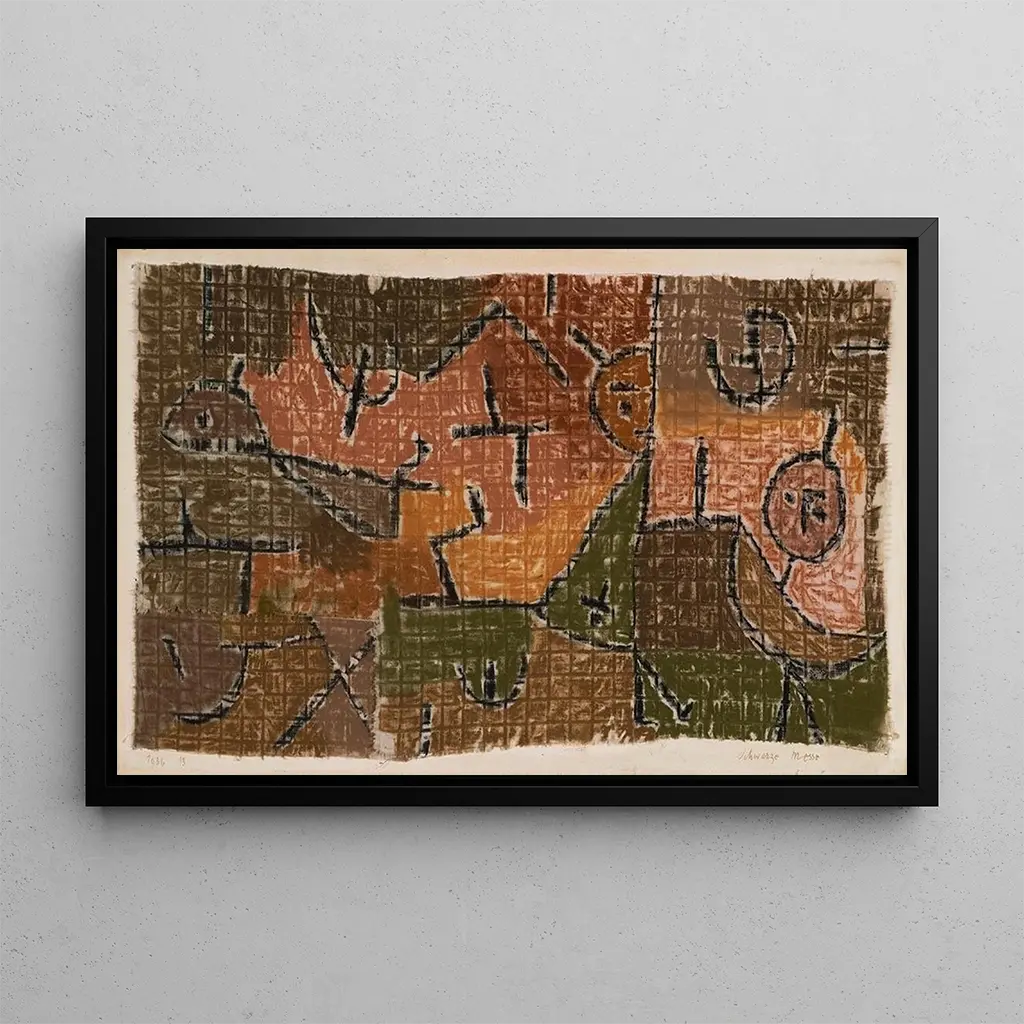 Paul Klee, artista suizo de principios del siglo XX, es considerado un pionero del arte moderno. Su estilo único, que combina abstracción y figuración, fue influenciado por el surrealismo y el cubismo. Klee exploró diversos temas, desde la infancia hasta la espiritualidad, pasando por la música, lo cual se refleja en sus obras. "Messe noire" es un ejemplo perfecto de su enfoque innovador, donde utiliza el color y la forma para expresar ideas complejas. Su legado artístico continúa influyendo en muchos artistas contemporáneos, convirtiéndolo en una figura imprescindible en la historia del arte.