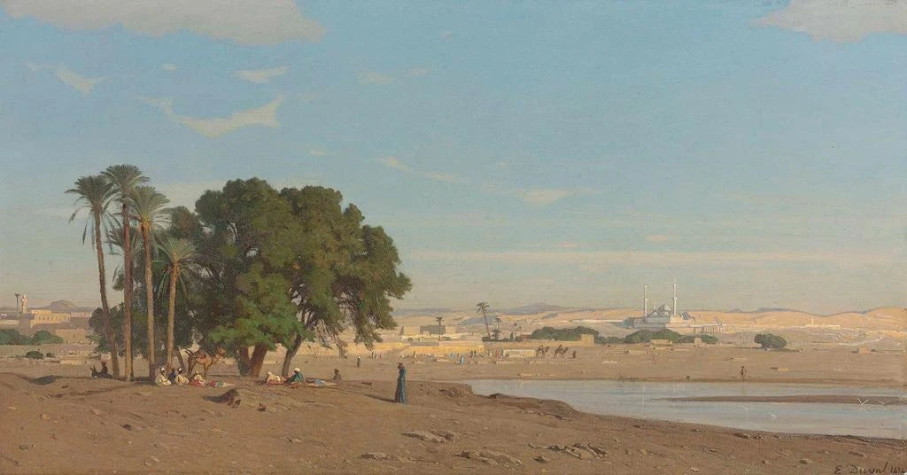 Figures près d'une oasis : un tableau évocateur de sérénité Dans "Figures près d'une oasis", Étienne Duval nous plonge dans un paysage enchanteur où la lumière douce caresse les formes humaines et naturelles. Les couleurs chaudes et terreuses, mêlées à des touches de vert, créent une atmosphère apaisante et rêveuse. La composition, centrée sur des personnages en interaction avec leur environnement, évoque une harmonie entre l'homme et la nature. Les détails minutieux des vêtements et des éléments de la flore renforcent la sensation de proximité avec ce lieu idyllique. Chaque coup de pinceau semble raconter une histoire, invitant le spectateur à s'imaginer dans cet oasis de paix. Étienne Duval : un maître du paysage romantique Étienne Duval, actif au XIXe siècle, est reconnu pour ses paysages qui capturent la beauté des scènes naturelles et humaines. Influencé par le mouvement romantique, il cherche à exprimer des émotions à travers ses œuvres, mettant en avant la relation entre l'homme et son environnement. Sa carrière est marquée par un intérêt pour les paysages exotiques, souvent inspirés de ses voyages. Duval a su intégrer des éléments de la culture orientale dans ses compositions, témoignant d'une époque où l'exotisme fascinait les artistes et le public. Ses œuvres, dont "Figures près d'une oasis", sont aujourd'hui considérées comme des témoignages précieux de son époque. Une acquisition décorative aux multiples atouts La reproduction de "Figures près d'une oasis" est un choix idéal pour embellir votre intérieur, que ce soit dans un salon, un bureau ou une chambre. Sa qualité d'impression garantit une fidélité remarquable aux couleurs et aux détails de l'œuvre originale, apportant une touche artistique à votre décoration. Ce tableau invite à la contemplation et à la rêverie, tout en créant une atmosphère chaleureuse et accueillante. Avec son attrait esthétique indéniable, cette toile saura séduire vos invités et enrichir votre espace de vie d'une note d'élégance intemporelle.