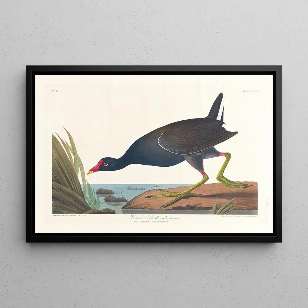 Gallinule poule-d'eau mâle adulte : un retrato de la naturaleza salvaje La impresión artística de la Gallinule poule-d'eau mâle adulte nos sumerge en un universo vibrante de colores y detalles. La obra de Audubon captura la belleza de este ave acuática, con su plumaje ricamente coloreado y sus rasgos delicados. Las tonalidades de verde, azul y rojo se mezclan armoniosamente, creando una atmósfera viva y dinámica. La técnica de acuarela, combinada con un dibujo minucioso, rinde homenaje a la gracia de este ave, al tiempo que evoca la serenidad de los entornos naturales que habita. Esta obra es una verdadera invitación a la admiración por la fauna salvaje. John James Audubon : pionero de la ornitología artística John James Audubon es un artista y naturalista del inicio del siglo XIX, famoso por sus estudios ornitológicos. Nacido en Haití en 1785, emigró a los Estados Unidos donde dedicó su vida a la observación y representación de las aves de América. Su estilo, que combina realismo y romanticismo, revolucionó la forma en que las aves eran representadas en el arte. Audubon fue influenciado por los paisajes estadounidenses y la biodiversidad que encontró, dando lugar a obras emblemáticas, como la serie "Las Aves de América". Su legado perdura, convirtiéndolo en una figura imprescindible del arte naturalista. Una adquisición decorativa con múltiples ventajas La impresión artística de la Gallinule poule-d'eau mâle adulte es una elección decorativa ideal para enriquecer su interior. Ya sea en una sala de estar, una oficina o un dormitorio, este lienzo aporta un toque de elegancia y naturaleza. Su calidad de impresión garantiza fidelidad en los colores y detalles de la obra original, permitiendo disfrutar de un atractivo estético indudable. Al elegir esta impresión artística, opta por una pieza que despierta curiosidad y admiración, celebrando la belleza de la fauna aviar.