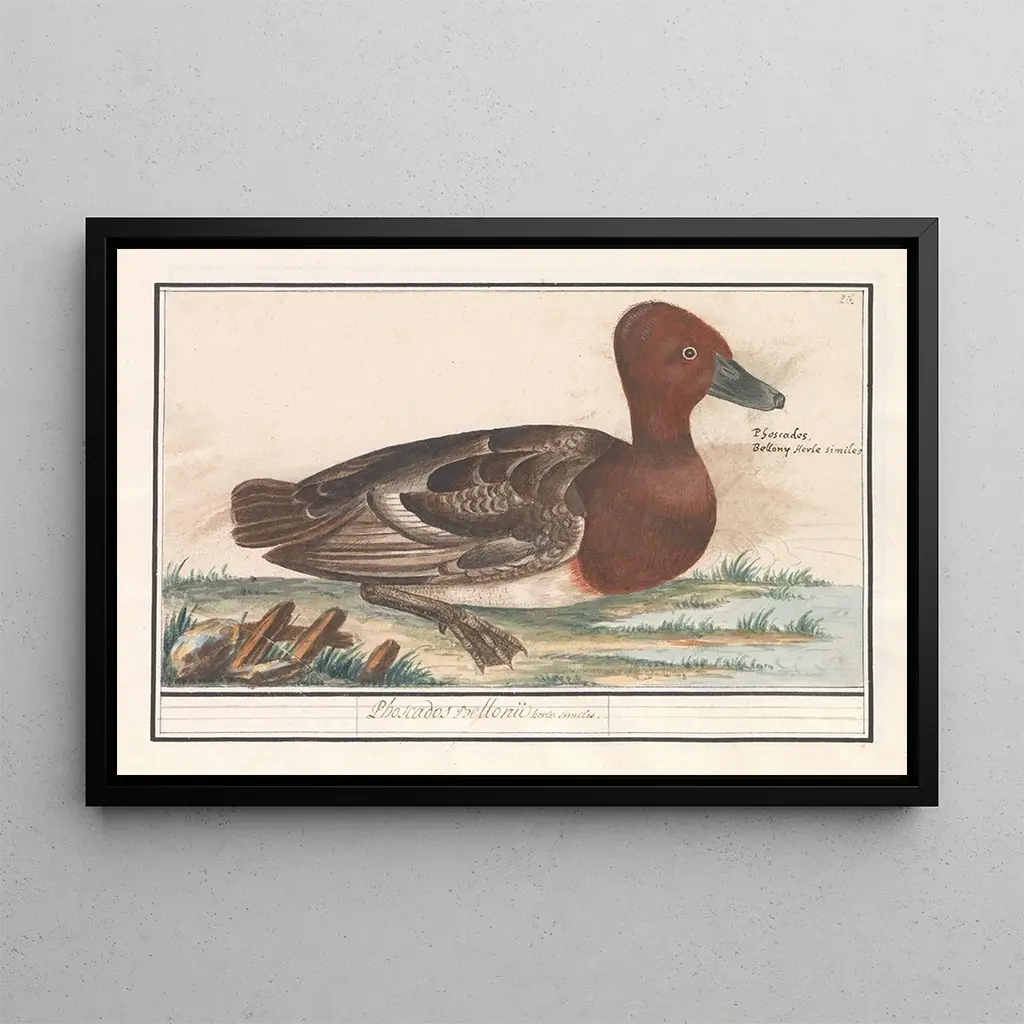 La impresión artística del cuadro "Canard siffleur (Anas penelope)" de Anselmus Botius de Boodt es una oda a la belleza de la naturaleza. Esta obra, realizada en el siglo XVII, destaca un canard siffleur, cuyos detalles minuciosos y colores delicados capturan la esencia de este ave acuática. La paleta de colores, dominada por matices de verde, azul y marrón, evoca los entornos naturales donde habita esta especie. La técnica del artista, que combina realismo y finura, permite sentir la ligereza del plumaje y la gracia del canard en su hábitat. Este lienzo invita a la contemplación de la fauna y la flora, celebrando la tranquilidad de los paisajes acuáticos.