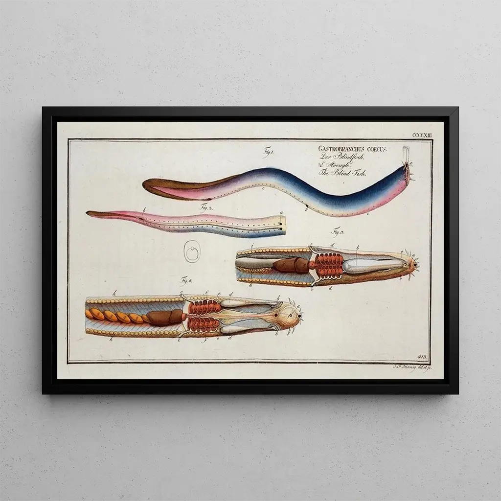 Esta impresión artística del Gastrobranchus coecus es una pieza decorativa ideal para un salón, una oficina o un dormitorio. Su calidad de impresión y su fidelidad a la obra original la convierten en una elección perfecta para los amantes del arte y de la naturaleza. Con su atractivo estético, esta obra atrae la mirada y genera conversaciones, además de aportar un toque de elegancia y curiosidad a su interior. Ofreciendo una ventana al mundo submarino, esta obra es una adición valiosa a cualquier colección de arte, combinando belleza y ciencia.