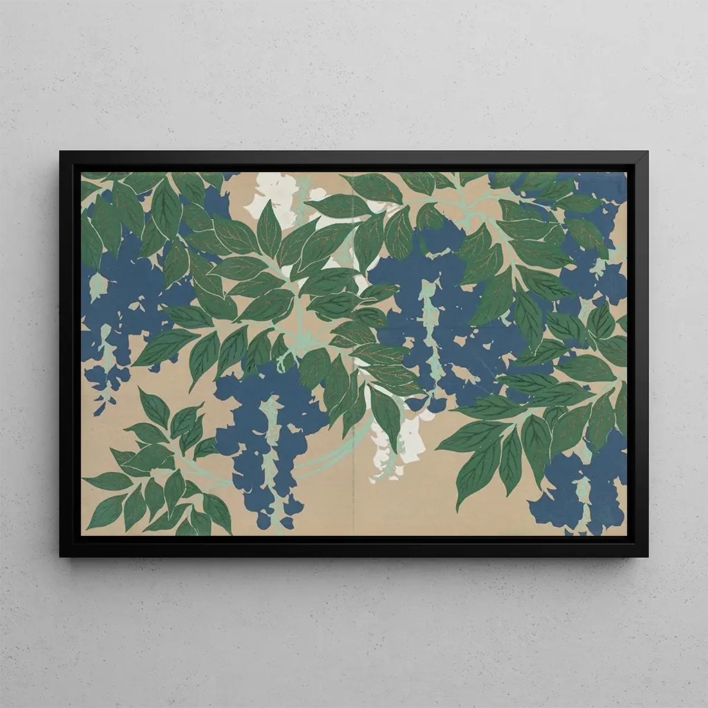 La impresión artística Glycine Fuji de Kamisaka Sekka es una obra que evoca la ligereza y la belleza efímera de las flores. En este lienzo, racimos de glicinas se entrelazan con gracia, creando un espectáculo visual cautivador. Los colores pastel, que van desde el delicado violeta hasta el blanco puro, se mezclan armoniosamente, mientras que la técnica de acuarela confiere una suavidad a todo el conjunto. La atmósfera que emana de esta obra es a la vez serena y poética, invitando al espectador a sumergirse en un universo floral donde el tiempo parece suspendido.