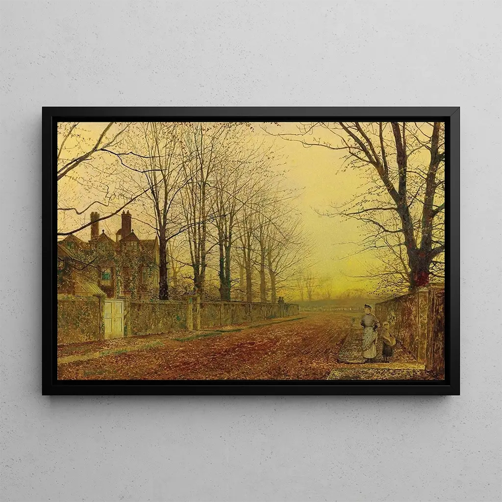 La reproduction Gloire d'automne de John Atkinson Grimshaw nous transporte dans un paysage automnal empreint de mélancolie et de beauté. Les teintes dorées et orangées des feuilles, illuminées par une lumière douce, créent une atmosphère presque magique. Grimshaw, maître du clair-obscur, utilise des contrastes saisissants pour mettre en valeur la profondeur et la texture de la nature. Les détails minutieux des arbres et des chemins évoquent une sensation de calme et de sérénité, tandis que le ciel, teinté de nuances pastel, ajoute une dimension poétique à cette scène. Cette œuvre est une véritable célébration de la saison, capturant la beauté éphémère de l'automne.