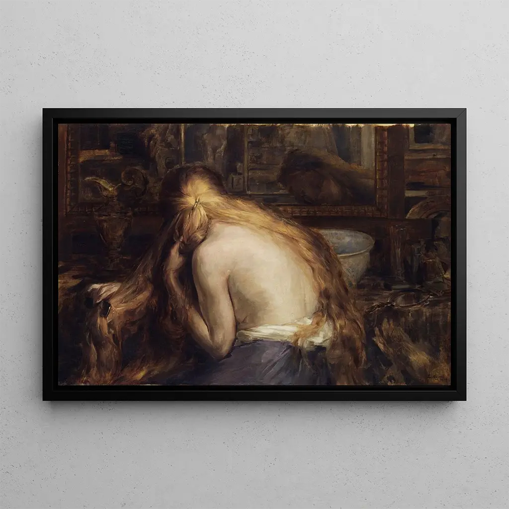Hymne à la femme : celebración de la belleza femenina La impresión artística de "Hymne à la femme" de Auguste Léveque es una oda a la belleza y a la gracia femeninas. Esta obra, rica en colores suaves y formas delicadas, evoca una atmósfera de serenidad y contemplación. Léveque utiliza matices pastel para crear un ambiente cálido, donde cada personaje parece vibrar con una energía suave y tranquilizadora. Los detalles minuciosos de las prendas y las expresiones de las mujeres representadas reflejan una atención especial a la belleza y a la elegancia, haciendo de esta obra un verdadero homenaje a la feminidad. Auguste Léveque : un artista comprometido con la representación de la mujer Auguste Léveque, pintor francés del siglo XIX, es conocido por sus obras que destacan la figura femenina desde diversos aspectos. Influenciado por el movimiento romántico, supo capturar la complejidad de las emociones humanas a través de sus retratos y escenas de género. Léveque ha explorado a menudo temas relacionados con la maternidad, el amor y la belleza, lo que le ha permitido consolidar un lugar importante en el arte de su época. Su compromiso con representar a la mujer de manera positiva y valoradora marcó su trayectoria artística, haciéndolo inolvidable en la historia del arte. Una adquisición decorativa con múltiples ventajas Esta impresión artística del cuadro "Hymne à la femme" es una pieza decorativa ideal para aportar un toque de suavidad a su interior. Ya sea en una sala, un dormitorio o una oficina, invita a la reflexión y a la admiración. La calidad de la impresión garantiza una fidelidad notable a los matices y detalles de la obra original, permitiendo apreciar plenamente el talento de Auguste Léveque. Con su atractivo estético y su capacidad para enriquecer el ambiente de su espacio, esta obra se convierte en un imprescindible para los amantes del arte y la belleza.