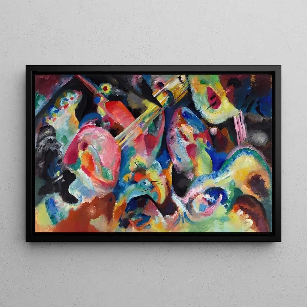Wassily Kandinsky, artista ruso de principios del siglo XX, es considerado a menudo uno de los fundadores de la impresión artística abstracta. Influenciado por la música y la espiritualidad, buscó traducir emociones en formas y colores, rompiendo con las convenciones de la representación figurativa. Su obra está marcada por una búsqueda de la esencia misma del arte, donde cada color y cada forma llevan un significado simbólico. "Improvisación Inundación" se inscribe en un período en el que Kandinsky explora las posibilidades de la abstracción, convirtiéndolo en una figura emblemática de la vanguardia artística. Su legado perdura, inspirando a numerosos artistas contemporáneos.