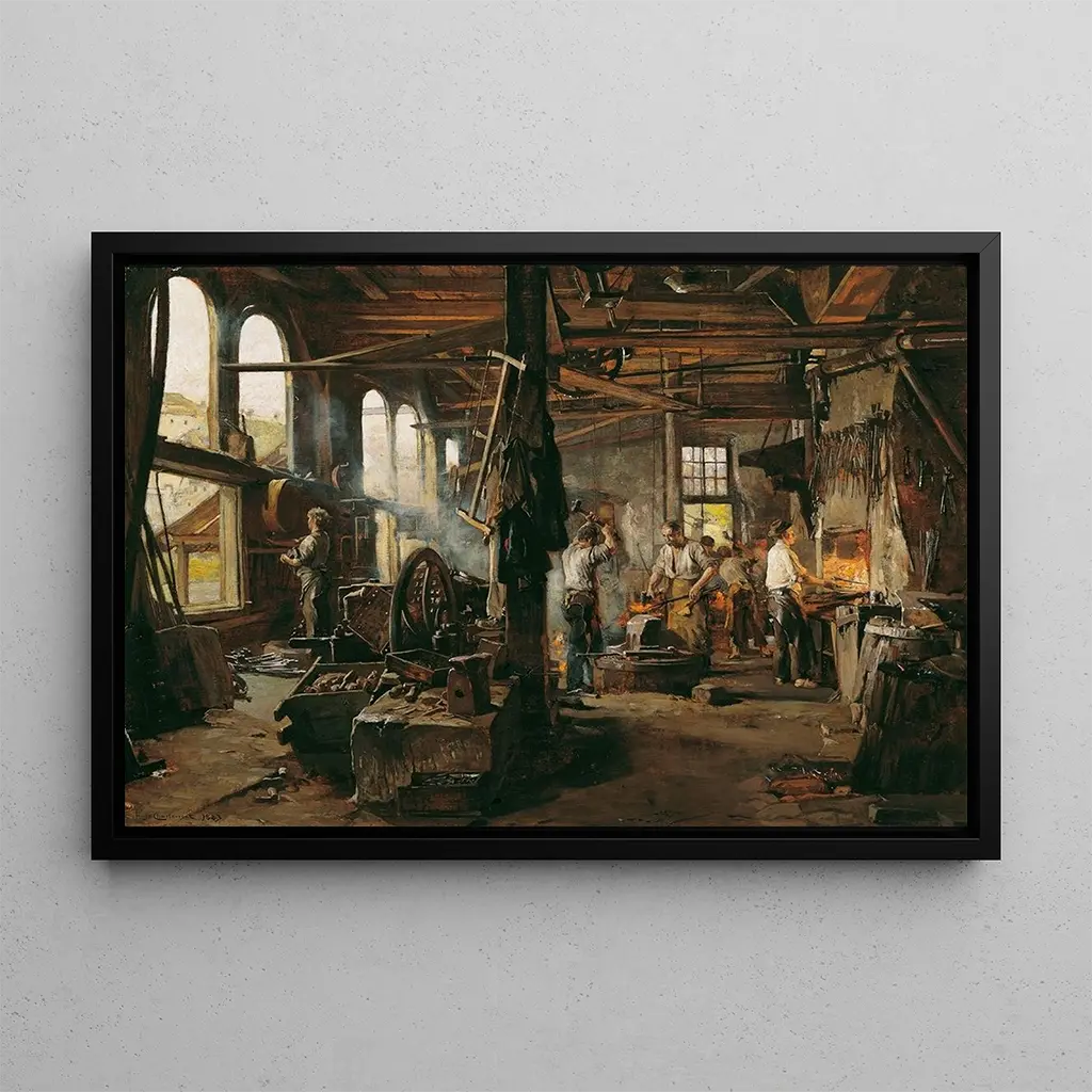 Interior de una fragua: una inmersión en la artesanía tradicional La impresión artística "Interior de una fragua" de Hugo Charlemont nos sumerge en el corazón de un taller donde el calor del fuego y el ruido del metal fundido crean una atmósfera única. Las tonalidades de gris y rojo, mezcladas con toques de luz, hacen que la escena sea viva y palpable. Charlemont logra capturar la esencia de la artesanía, mostrando al herrero en acción, concentrado en su tarea. La atmósfera que emana de esta obra evoca la fuerza y la determinación de los artesanos de antaño, al tiempo que celebra la belleza del trabajo manual. Es una invitación a apreciar las profesiones tradicionales y su savoir-faire. Hugo Charlemont: un artista en el corazón del realismo Hugo Charlemont, nacido en 1849, es un pintor francés reconocido por su talento para representar escenas de la vida cotidiana. Formado en la École des Beaux-Arts, se inscribe en el movimiento realista, buscando reflejar la verdad de las cosas. Sus obras, a menudo inspiradas en temas sociales e históricos, testimonian una gran sensibilidad hacia las profesiones y las tradiciones. Charlemont supo inmortalizar momentos simples pero significativos, como en "Interior de una fragua", donde pone en luz el trabajo arduo de los artesanos. Su legado artístico sigue siendo importante, recordando la importancia de la representación de lo real en el arte. Una adquisición decorativa con múltiples ventajas La impresión artística "Interior de una fragua" es una pieza decorativa que aportará carácter a su espacio vital. Ya sea en una sala de estar, una oficina o una cocina, esta obra evoca una artesanía de antaño que fascina e inspira. La calidad de la impresión asegura fidelidad a los detalles de la obra original, permitiendo apreciar plenamente el talento de Charlemont. Su atractivo estético, con colores ricos y una composición dinámica, capta la atención y enriquece el ambiente de la habitación. Al elegir esta obra, opta por una decoración que combina historia, cultura y elegancia, celebrando al mismo tiempo el savoir-faire tradicional.