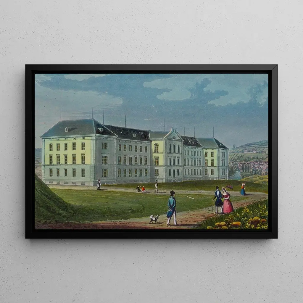 La impresión artística La Maison de la prébende, Hôtel-Dieu de Zurich de Franz Schmid nos transporta al corazón de un edificio histórico, donde la arquitectura se combina con la historia. Este cuadro destaca los detalles refinados de la fachada, con sus ornamentos delicados y sus ventanas majestuosas. Los colores cálidos y terrosos evocan una atmósfera acogedora, mientras que la luz juega sobre las superficies, acentuando la belleza de esta construcción emblemática. La obra de Schmid invita a explorar los relatos que alberga este edificio, símbolo de un patrimonio cultural rico y vivo.
