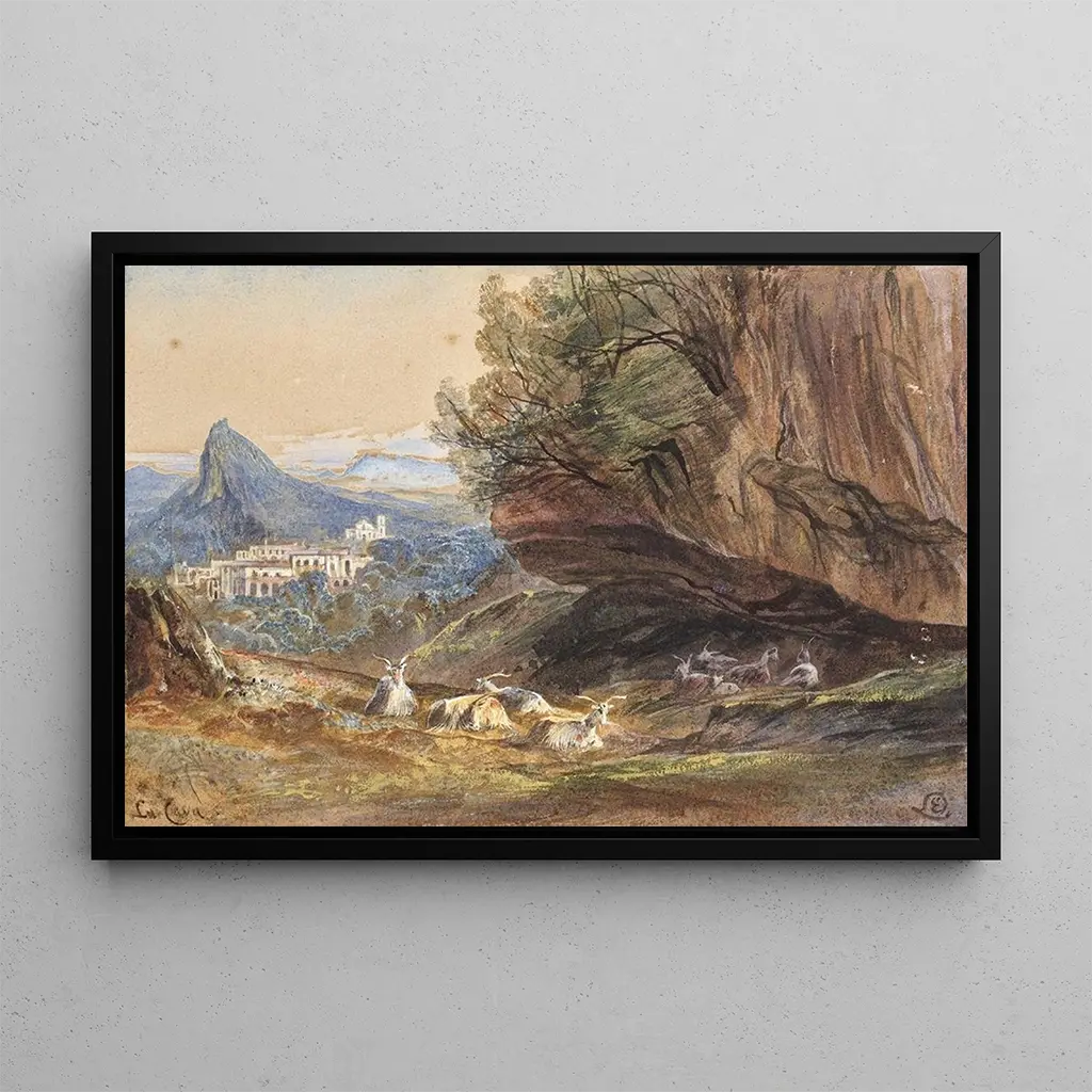 La Cava, Italia, es una impresión artística que evoca la serenidad de un paisaje mediterráneo. Edward Lear, maestro del paisaje, utiliza colores suaves y matices delicados para capturar la luz que danza sobre el agua. La composición, con sus colinas verdes y sus reflejos pacíficos, invita a una contemplación relajante. Los detalles minuciosos de los árboles y los edificios añaden un toque de realismo, mientras que el cielo azul claro crea una atmósfera de ensueño. Esta impresión artística, verdadera oda a la belleza natural, transporta al espectador en un viaje visual al corazón de Italia.