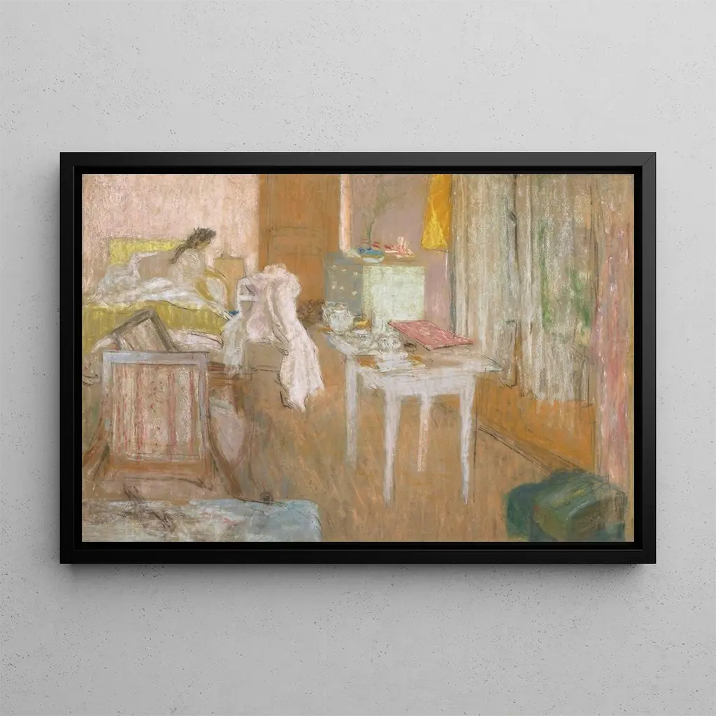 Édouard Vuillard, membre du groupe des Nabis, a marqué la fin du XIXe siècle et le début du XXe siècle par son style unique, mêlant impressionnisme et symbolisme. Influencé par des artistes comme Pierre Bonnard et Paul Sérusier, Vuillard s'est concentré sur la représentation de la vie quotidienne et des intérieurs, capturant la lumière et l'atmosphère avec une sensibilité remarquable. Son travail, souvent axé sur des thèmes domestiques, a contribué à redéfinir la peinture de genre, lui conférant une importance durable dans l'histoire de l'art. La chambre rose est un parfait exemple de son approche, où l'intimité et la beauté du quotidien sont sublimées.