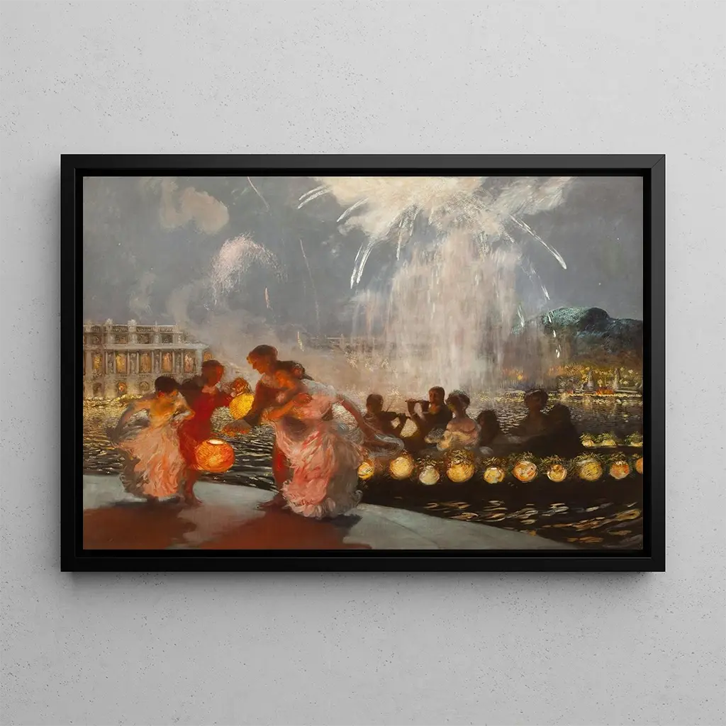 La fiesta alegre: una celebración de la vida y los colores La fiesta alegre de Gaston La Touche es una obra vibrante que evoca la alegría y la despreocupación. Los personajes, sumergidos en una atmósfera festiva, parecen bailar al ritmo de una melodía invisible. Los colores brillantes, que van desde los rojos profundos hasta los amarillos luminosos, se mezclan armoniosamente, creando una sensación de movimiento y alegría. La técnica impresiónista de La Touche, con sus golpes de pincel dinámicos, da vida a esta escena, permitiendo al espectador sentir la energía de la fiesta. La obra invita a una contemplación donde cada detalle cuenta una historia, donde la luz juega un papel esencial en la puesta en escena de esta celebración. Gaston La Touche: un maestro del impresionismo francés Gaston La Touche, nacido en 1854, es un artista emblemático del impresiónismo francés. Influenciado por maestros como Monet y Renoir, supo desarrollar un estilo único, caracterizado por escenas de la vida cotidiana y paisajes bucólicos. La Touche también fue un miembro activo del movimiento de los Nabis, incorporando elementos simbolistas en su trabajo. Su obra, aunque menos conocida que la de sus contemporáneos, marcó su época por su capacidad para capturar la luz y la emoción. La fiesta alegre es un ejemplo perfecto de su talento, ilustrando la importancia de la alegría y la armonía en la vida humana. Una adquisición decorativa con múltiples ventajas La reproducción de La fiesta alegre es una pieza decorativa que embellecerá cualquier interior, ya sea de una sala, una oficina o un dormitorio. Su calidad de impresión garantiza una fidelidad notable a los colores y detalles de la obra original, permitiendo disfrutar plenamente de la atmósfera festiva que transmite. Al integrar este cuadro en su decoración, aporta un toque de elegancia y dinamismo a su espacio. El atractivo estético de esta tela la convierte en una opción ideal para quienes desean crear un ambiente cálido y acogedor, celebrando al mismo tiempo el arte impresionista.