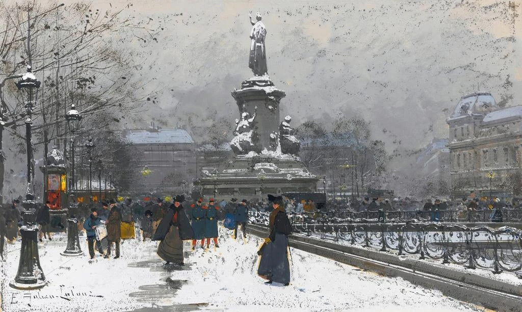 Eugène Galien-Laloue, activo a finales del siglo XIX y principios del XX, es un artista emblemático de la transición hacia la modernidad. Influenciado por las corrientes impresionistas, se especializa en escenas de la vida parisina, capturando la esencia de las calles y plazas de la capital. Su obra testimonia una época en la que la ciudad se transforma, donde las nuevas tecnologías y los cambios sociales influyen en la vida cotidiana. Galien-Laloue supo inmortalizar estos momentos fugaces, convirtiéndose en un artista imprescindible para entender la evolución de la pintura urbana.