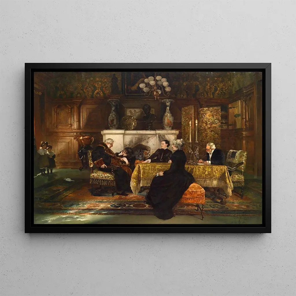 La impresión artística La Redacción del Testamento de Christian Ludwig Bokelmann captura un instante lleno de emoción y significado. Este cuadro, rico en detalles y expresiones, representa una escena donde personajes se reúnen alrededor de un acto solemne. Los colores oscuros y los juegos de sombra acentúan la gravedad del momento, mientras que la luz resalta los rostros y gestos de los protagonistas. La atmósfera es a la vez dramática e introspectiva, invitando al espectador a reflexionar sobre los temas de la vida, la muerte y las relaciones humanas.