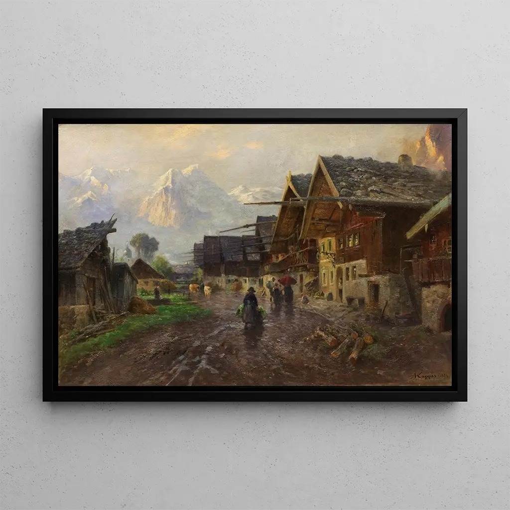 La Rue du Printemps à Garmisch : une ode à la nature épanouie La Rue du Printemps à Garmisch est une œuvre vibrante qui évoque la douceur d'un printemps en pleine floraison. Les couleurs pastel, allant des verts tendres aux roses éclatants, se mêlent harmonieusement pour créer une atmosphère sereine et joyeuse. La technique de l'aquarelle, utilisée par Albert Kappis, permet de capturer la lumière et la transparence des fleurs, tout en donnant vie à la scène animée des passants. Chaque coup de pinceau semble danser sur la toile, invitant le spectateur à se plonger dans cette promenade printanière, où la nature et l'humanité coexistent en parfaite harmonie. Albert Kappis : un maître de la lumière et de la couleur Albert Kappis, artiste allemand actif au début du XXe siècle, est reconnu pour sa capacité à traduire la beauté des paysages naturels en œuvres d'art captivantes. Influencé par le mouvement impressionniste, il s'est consacré à l'exploration des effets de la lumière sur la nature. Sa période de création coïncide avec un renouveau artistique en Europe, où les artistes cherchent à s'éloigner des conventions académiques pour embrasser des styles plus libres et expressifs. Kappis, à travers ses paysages, nous transporte dans un monde où chaque saison est célébrée, et où la beauté éphémère de la nature est mise en avant. Une acquisition décorative aux multiples atouts La reproduction de La Rue du Printemps à Garmisch est un choix décoratif idéal pour embellir votre intérieur, que ce soit dans un salon, un bureau ou une chambre. Sa palette de couleurs douces et apaisantes apporte une touche de fraîcheur et de sérénité à n'importe quel espace. La qualité de la reproduction garantit une fidélité remarquable à l'œuvre originale, permettant de profiter de son attrait esthétique sans compromis. En choisissant ce tableau, vous offrez à votre décoration un accent artistique qui évoque la beauté de la nature et invite à la contemplation.