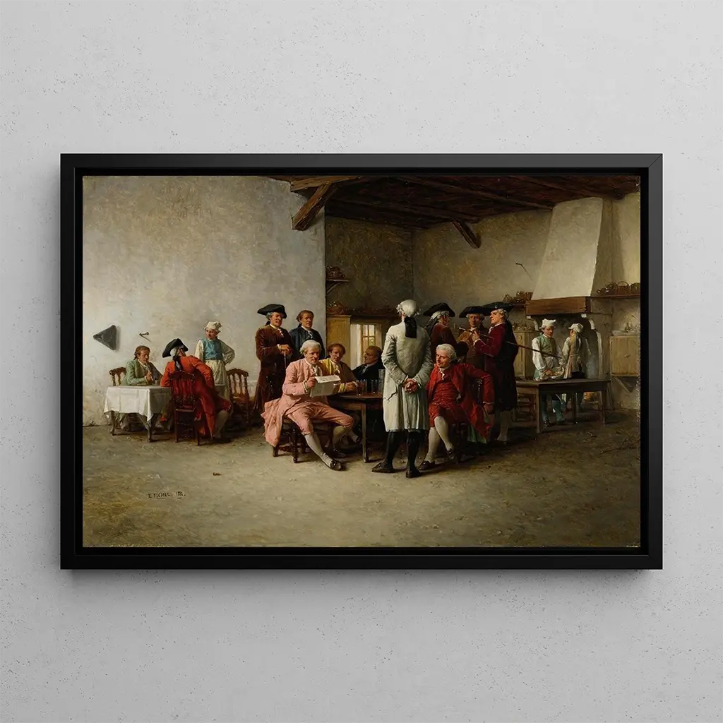 La Salle de Club : una impresión artística de elegancia y convivialidad La Salle de Club, obra emblemática de Benjamin Eugène Fichel, transporta al espectador a un universo de refinamiento y sociabilidad. La composición, rica en detalles, presenta personajes elegantemente vestidos, reunidos alrededor de una mesa, inmersos en intercambios animados. Los colores cálidos y dorados crean una atmósfera acogedora, mientras que la luz suave ilumina los rostros, revelando expresiones de complicidad y alegría. La técnica de Fichel, que combina realismo y toques impresionistas, da vida a esta escena, capturando la esencia de un momento privilegiado en un entorno íntimo. Benjamin Eugène Fichel : un maestro del género Benjamin Eugène Fichel, activo en el siglo XIX, es reconocido por sus escenas de género que celebran la vida cotidiana y las interacciones humanas. Influenciado por el movimiento realista, se inscribe en una tradición artística que valora la observación minuciosa de la sociedad. Fichel supo capturar instantes de vida con una sensibilidad particular, haciendo de sus obras testimonios valiosos de su época. Su estilo, a la vez detallado y expresivo, le permitió destacarse entre sus contemporáneos, contribuyendo así al enriquecimiento del patrimonio artístico francés. Una adquisición decorativa con múltiples ventajas La impresión artística de La Salle de Club es una pieza decorativa ideal para enriquecer su interior, ya sea en una sala de estar, una oficina o un dormitorio. Su calidad de impresión y su fidelidad a la obra original garantizan una estética refinada que seducirá a sus invitados. Este cuadro, con su ambiente cálido, invita a la convivialidad y a la conversación, haciendo de cada mirada un momento de contemplación. Al integrar esta tela en su decoración, aporta un toque de elegancia atemporal a su espacio, celebrando el arte de Benjamin Eugène Fichel.