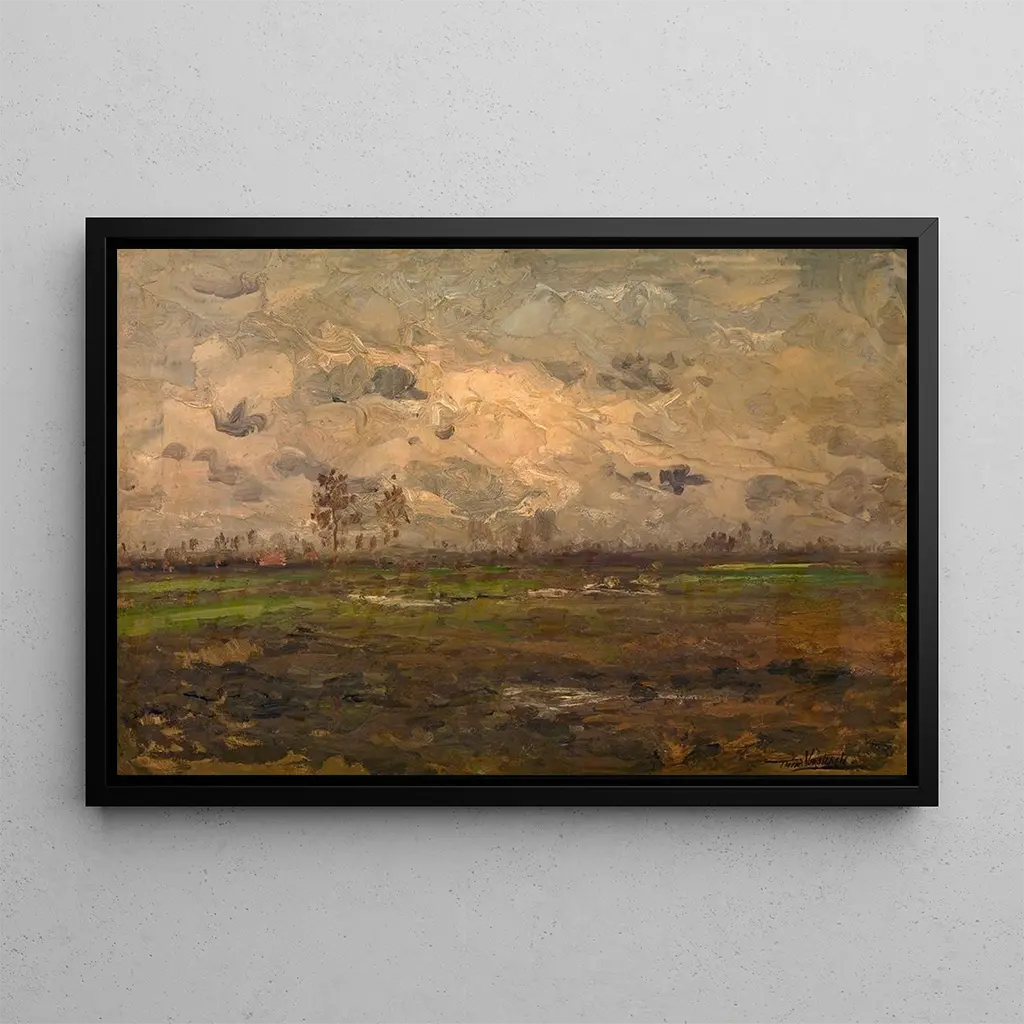 La Lande, obra emblemática de Theodoor Verstraete, nos sumerge en un paisaje rural donde la belleza de la naturaleza florece. Los colores cálidos y terrosos, mezclados con toques de verde brillante, evocan una atmósfera pacífica y serena. La técnica impresionista de Verstraete, caracterizada por pinceladas rápidas y fluidas, da vida a cada brizna de hierba y a cada nube. Este cuadro invita a la contemplación, permitiendo al espectador escapar a un mundo donde el tiempo parece suspendido, donde la naturaleza reina en su máximo esplendor.