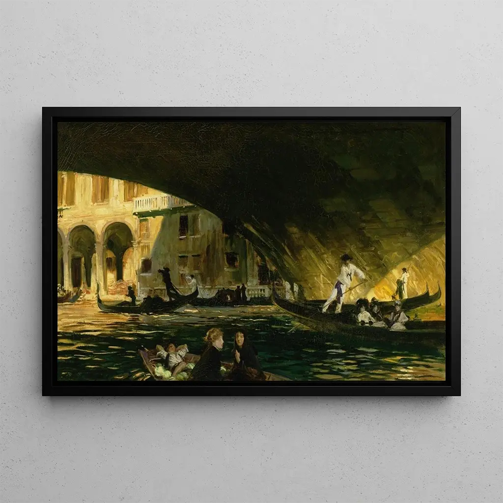 John Singer Sargent, né en 1856, est un peintre américain d'origine italienne, reconnu pour son talent exceptionnel dans le portrait et les paysages. Influencé par les maîtres européens, Sargent a su développer un style unique, alliant réalisme et impressionnisme. Sa carrière, qui s'étend sur la fin du XIXe et le début du XXe siècle, est marquée par des œuvres emblématiques qui témoignent de son habileté à capturer la lumière et le mouvement. "Le Rialto" s'inscrit dans une période où Sargent explore la vie urbaine, révélant son intérêt pour les scènes de la vie quotidienne et les interactions humaines.