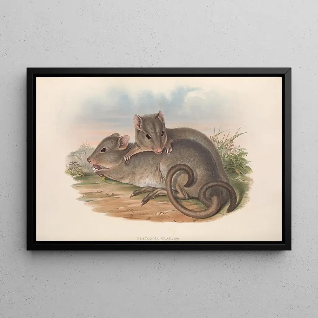 Dans cette reproduction vibrante, Les mammifères d'Australie Pl100, John Gould nous transporte dans un monde où la nature s'exprime avec éclat. Les détails minutieux des animaux, associés à des couleurs riches et variées, créent une atmosphère à la fois vivante et apaisante. Chaque élément de la composition, des textures des fourrures aux nuances des paysages, invite à une exploration attentive de la biodiversité unique de ce continent. La technique de gravure utilisée par Gould confère à l'œuvre une qualité presque tactile, rendant hommage à la beauté sauvage des espèces représentées.