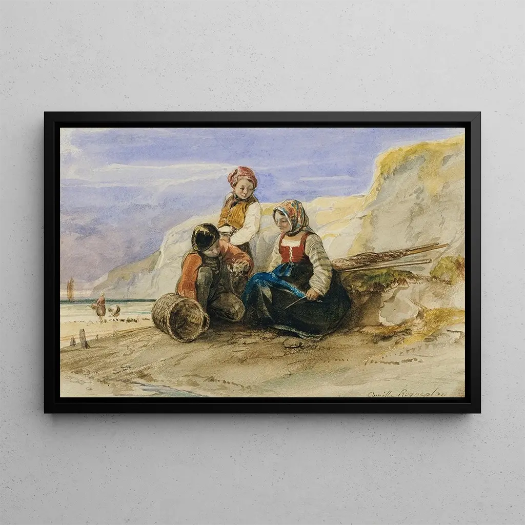 En Les Enfants du Pêcheur, Camille Joseph Étienne Roqueplan nos sumerge en una escena de vida cotidiana llena de ternura. Los niños, alegres e despreocupados, se activan alrededor de un pescador, cuyas risas resuenan como una melodía suave. La paleta de colores vivos, dominada por tonos de azul y verde, evoca la frescura de la naturaleza y la vitalidad de la infancia. La técnica de Roqueplan, que combina realismo e impresionismo, confiere a esta obra una atmósfera dinámica y cálida, capturando la esencia misma de la alegría de vivir.