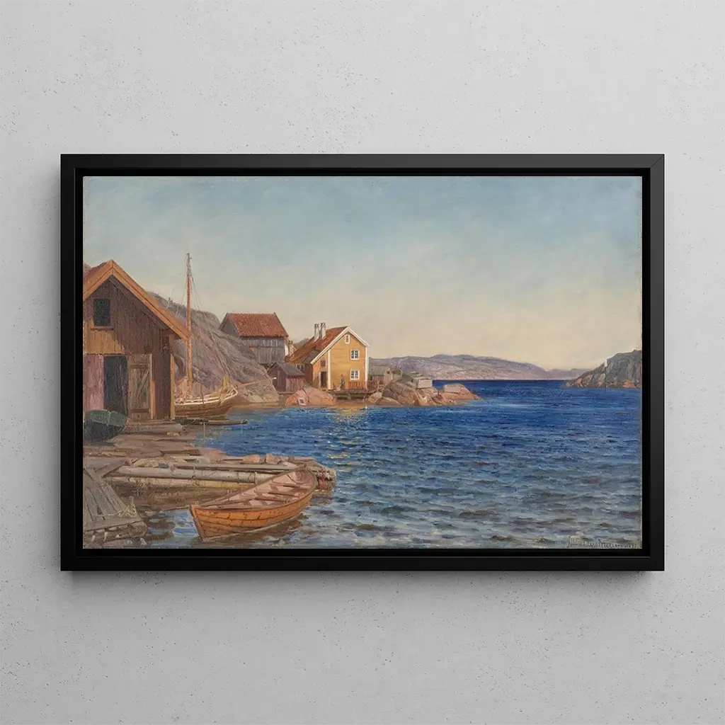 Matin à Ny-Hellesund : una sinfonía de luz y serenidad En esta obra cautivadora, Amaldus Nielsen nos transporta al corazón de una mañana tranquila en Ny-Hellesund, un pequeño pueblo noruego. La tela despliega una paleta de colores suaves, donde las tonalidades de azul y verde se mezclan armoniosamente, evocando la frescura del amanecer. La técnica de impresión artística de Nielsen, con sus trazos de pincel fluidos y su capacidad para capturar la luz, crea una atmósfera de tranquilidad y contemplación. Los reflejos en el agua y la suavidad de las formas naturales invitan al espectador a sumergirse en este paisaje idílico, donde cada detalle parece respirar paz. Amaldus Nielsen: un maestro del paisaje escandinavo Nacido en 1850, Amaldus Nielsen es un pintor noruego reconocido por sus paisajes marinos y sus escenas de la naturaleza. Influenciado por el impresionismo, supo desarrollar un estilo único que destaca la belleza de los paisajes escandinavos. Nielsen pasó una parte de su vida viajando, lo que le permitió impregnarse de las diferentes luces y atmósferas de los lugares que pintó. Su obra suele asociarse con la búsqueda de la luz y el color, elementos esenciales de su legado artístico. Como figura importante del movimiento impresionista en Noruega, contribuyó a dar a conocer la riqueza de los paisajes nórdicos a través de sus lienzos. Una adquisición decorativa con múltiples ventajas La impresión artística de Matin à Ny-Hellesund es una pieza decorativa ideal para aportar un toque de serenidad a su interior. Ya sea en una sala de estar, una oficina o un dormitorio, este cuadro evoca una atmósfera relajante que invita a la ensoñación. Su calidad de impresión artística garantiza una fidelidad a los detalles y colores de la obra original, permitiendo así disfrutar de la estética refinada de Amaldus Nielsen. Con su atractivo visual y su ambiente relajante, esta tela se integra perfectamente en diversos estilos de decoración, convirtiéndola en una elección acertada para embellecer su espacio vital.