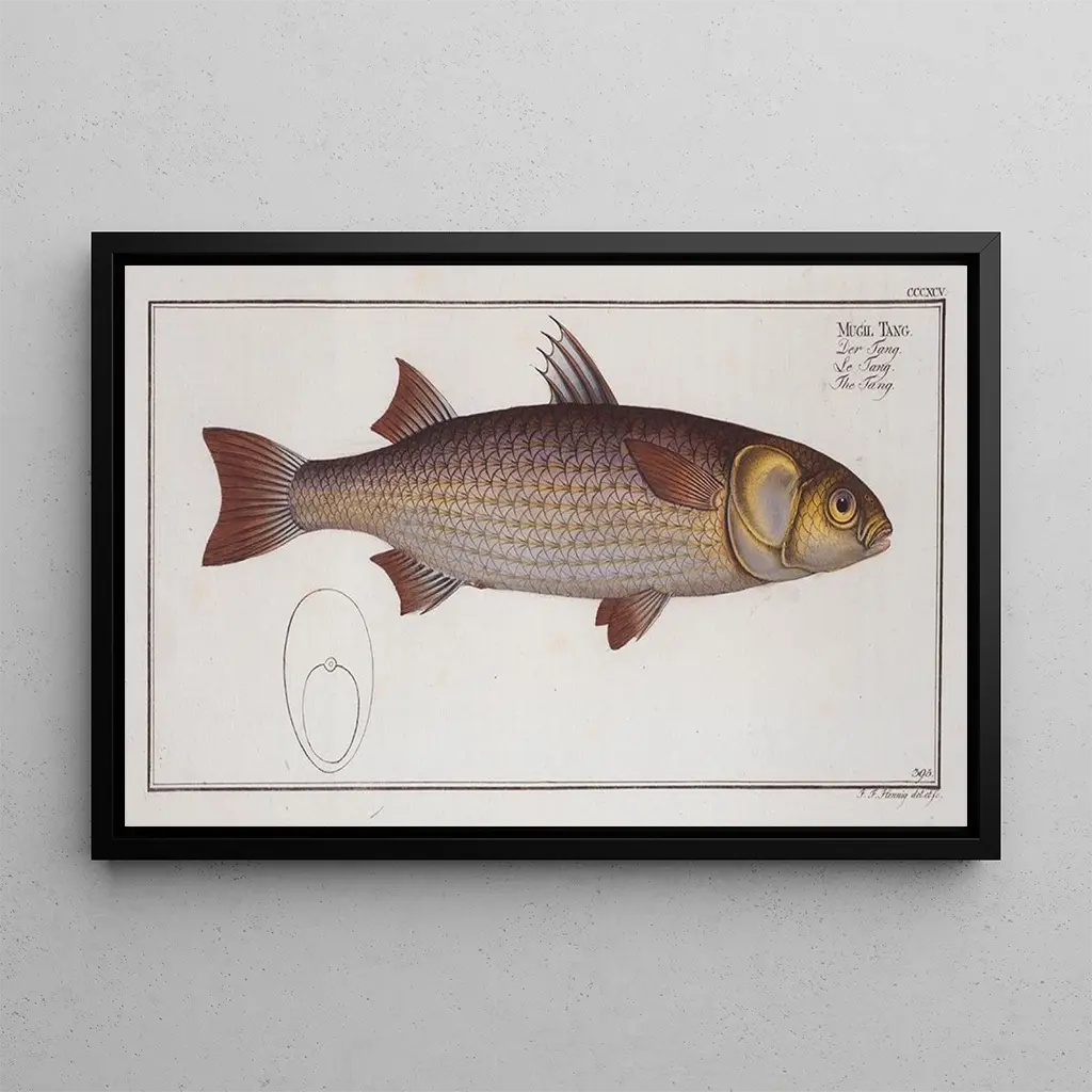 Marcus Elieser Bloch, actif au XVIIIe siècle, est reconnu comme l’un des premiers à documenter la diversité des espèces marines à travers ses illustrations. Son œuvre se situe à la croisée de l’art et de la science, reflétant l’essor de l’intérêt pour la biologie marine à son époque. Influencé par les découvertes des explorateurs, Bloch a su allier précision scientifique et esthétique dans ses tableaux. Ses reproductions, dont Mugil Tang Le Tang, sont devenues des références pour les naturalistes et les artistes. Son héritage perdure, témoignant de l’importance de l’observation minutieuse et de la représentation fidèle de la nature.