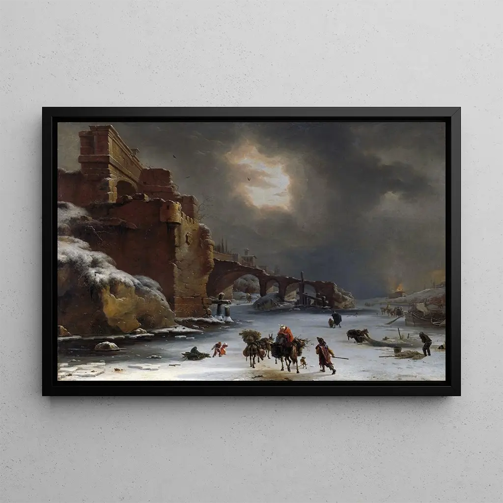 Murs de la Ville en Hiver : una escena urbana impregnada de melancolía Murs de la Ville en Hiver, obra impactante de Willem Schellinks, captura la esencia de una ciudad bajo el manto de nieve. Las paredes, cubiertas de escarcha, parecen contar historias de soledad y belleza efímera. Los tonos fríos de azul y gris predominan, creando una atmósfera a la vez melancólica y poética. La composición, con sus líneas arquitectónicas y sombras delicadas, invita a una profunda contemplación de la vida urbana en invierno. Cada detalle, desde los copos de nieve hasta los reflejos en las paredes, contribuye a la inmersión en esta escena invernal, donde el silencio de la nieve parece calmar el tumulto de la ciudad. Willem Schellinks : un testigo de la vida urbana en el siglo XVII Willem Schellinks, pintor neerlandés del siglo XVII, es famoso por sus representaciones de paisajes urbanos y escenas de la vida cotidiana. Su estilo, influenciado por el barroco, se distingue por un realismo impactante y una atención especial a los detalles. Schellinks supo capturar la esencia de su época, ofreciendo una visión valiosa de la vida en las ciudades neerlandesas. A través de sus obras, evoca emociones y ambientes, como en Murs de la Ville en Hiver, donde la belleza del invierno se mezcla con la nostalgia. Su legado artístico continúa inspirando a los amantes del arte hoy en día. Una adquisición decorativa con múltiples ventajas La impresión artística de Murs de la Ville en Hiver es una elección perfecta para enriquecer tu decoración interior. Ya sea en una sala de estar, una oficina o un dormitorio, este lienzo aporta una atmósfera única y relajante. Su calidad de impresión garantiza una fidelidad notable a los matices y detalles de la obra original, permitiendo disfrutar plenamente de su encanto. Al integrar este cuadro en tu espacio, creas un punto focal cautivador que suscita admiración y reflexión. Esta obra de Schellinks, con su ambiente invernal, es una verdadera ventaja para toda decoración, combinando estética y emoción.