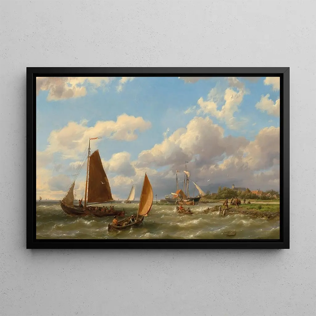 Dans cette œuvre captivante, Hermanus Koekkoek nous plonge au cœur d'un paysage maritime vibrant. Les navires à voile, majestueux et élégants, semblent glisser sur les eaux calmes de l'Escaut, tandis que le ciel se pare de nuances dorées et bleutées. La technique de Koekkoek, caractérisée par des coups de pinceau précis et une attention méticuleuse aux détails, crée une atmosphère à la fois sereine et dynamique. Les reflets des voiles sur l'eau ajoutent une dimension poétique à cette scène, invitant le spectateur à s'imaginer sur l'un de ces vaisseaux, en harmonie avec la nature environnante.