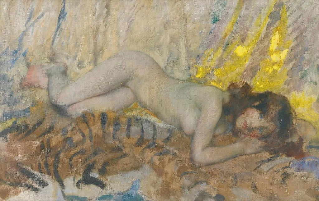 Nu sobre una piel de tigre: una celebración de la belleza femenina
