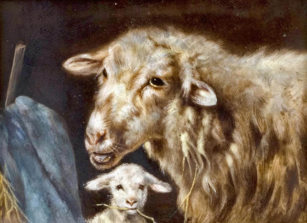Oveja con cordero en el establo - Friedrich Otto Gebler