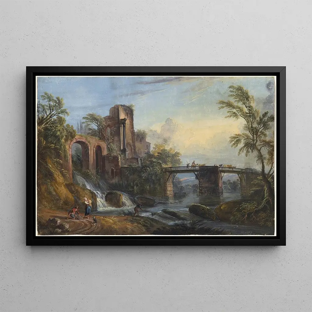Paisaje al amanecer con ruinas clásicas : una armonía entre la naturaleza y la historia La impresión artística de Paisaje al amanecer con ruinas clásicas de Jean-Baptiste Lallemand nos transporta a un mundo donde la belleza natural encuentra los vestigios del pasado. Esta obra representa un paisaje sereno, bañado en tonos pastel delicados, donde la suave luz del amanecer ilumina las ruinas antiguas. Los detalles minuciosos de los elementos arquitectónicos, combinados con la vegetación circundante, crean una atmósfera de tranquilidad y contemplación. Lallemand logra capturar la magia de un momento fugaz, invitando al espectador a sumergirse en esta escena poética. Jean-Baptiste Lallemand : un maestro del paisaje neoclásico Jean-Baptiste Lallemand, pintor francés del siglo XVIII, es reconocido por sus paisajes inspirados en el neoclasicismo. Influenciado por los grandes maestros de la pintura italiana, Lallemand supo combinar la rigidez de las formas clásicas con una sensibilidad romántica. Sus obras, a menudo impregnadas de melancolía, reflejan una fascinación por la antigüedad y la naturaleza. Como artista del período neoclásico, contribuyó a moldear la visión estética de su tiempo, celebrando la belleza de los paisajes mientras evoca los recuerdos de una época pasada. Una adquisición decorativa con múltiples ventajas La impresión artística de Paisaje al amanecer con ruinas clásicas es una elección perfecta para embellecer su interior, ya sea en una sala de estar, una oficina o un dormitorio. Su estética refinada y su paleta de colores relajantes aportan un toque de elegancia a cualquier espacio. La calidad de la impresión asegura fidelidad a los detalles de la obra original, permitiendo disfrutar de la belleza atemporal de esta escena. Al integrar esta obra en su decoración, crea un entorno inspirador, propicio para la reflexión y la evasión.