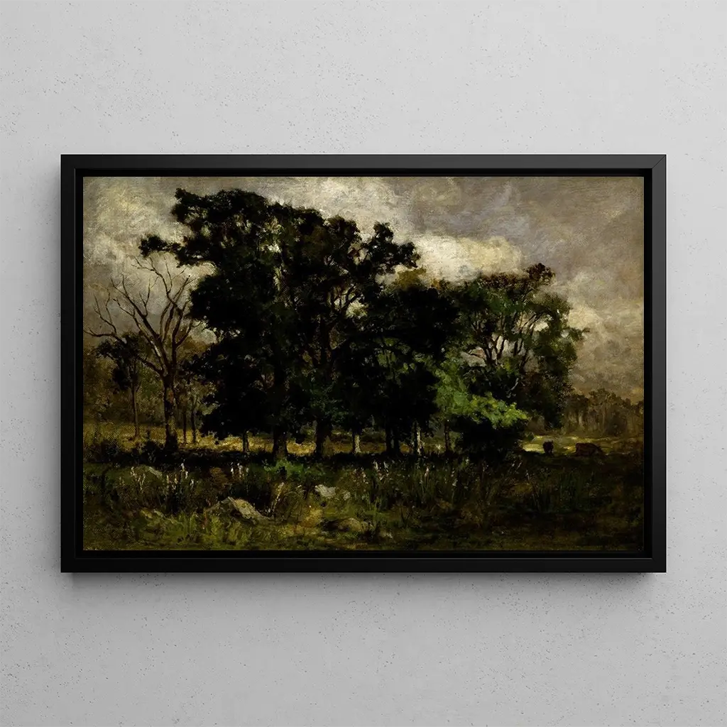 En esta obra cautivadora, Edward Mitchell Bannister nos transporta al corazón de un paisaje encantador, donde la luz juega con el follaje de los árboles. Los colores vibrantes y las tonalidades delicadas de verdes y marrones crean una atmósfera tranquila, casi meditativa. La técnica de Bannister, que combina impresiónismo y realismo, permite sentir la textura de las cortezas y la suavidad del follaje. Cada pincelada parece invitar al espectador a sumergirse en esta escena bucólica, donde el tiempo parece suspendido, ofreciendo una verdadera evasión sensorial.