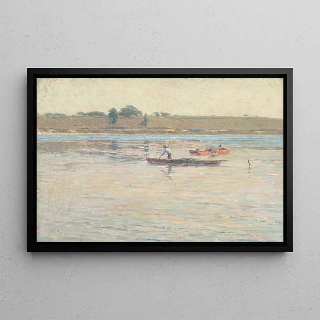 Paysaje con pescadores: una armonía entre el hombre y la naturaleza El cuadro "Paysaje con pescadores" es una obra cautivadora que ilustra la coexistencia pacífica entre el hombre y su entorno. En esta escena bucólica, pescadores trabajan en la orilla de un curso de agua, mientras la naturaleza circundante florece en colores vibrantes. Los tonos suaves del lienzo, que combinan verdes exuberantes y azules relajantes, crean una atmósfera serena y contemplativa. La técnica utilizada, caracterizada por pinceladas fluidas, da una impresión de movimiento, como si se pudiera escuchar el murmullo del agua y el canto de los pájaros. Este cuadro invita a una escapada hacia paisajes idílicos, lejos del bullicio cotidiano. Escuela Americana: un reflejo de la naturaleza salvaje La Escuela Americana, activa en el siglo XIX, desempeñó un papel crucial en la evolución de la impresión artística paisajística en los Estados Unidos. Este movimiento artístico, influenciado por el romanticismo europeo, destacó la belleza salvaje y los vastos paisajes estadounidenses. Los artistas de esa época, cuyas obras a menudo están impregnadas de poesía, buscaron capturar la grandeza de la naturaleza mientras incorporaban elementos de la vida cotidiana. "Paysaje con pescadores" encaja perfectamente en esta tradición, testimoniando una época en la que la naturaleza era a la vez fuente de inspiración y de subsistencia. Este cuadro refleja el compromiso de los artistas por representar la realidad de su tiempo, celebrando al mismo tiempo la belleza de los paisajes estadounidenses. Una adquisición decorativa con múltiples ventajas Elegir la impresión artística de "Paysaje con pescadores" para su decoración interior es una excelente idea. Este cuadro se integra armoniosamente en diversos espacios, ya sea en una sala de estar, una oficina o un dormitorio. La calidad de la impresión asegura fidelidad a las tonalidades y detalles de la obra original, aportando un toque de elegancia y serenidad a su interior. El atractivo estético de esta escena pacífica, donde el hombre y la naturaleza coexisten en armonía, lo convierte en un elemento decorativo que seducirá a sus invitados y enriquecerá su entorno. Al añadir esta obra a su colección, ofrece a su espacio una dimensión artística y cultural indiscutible.