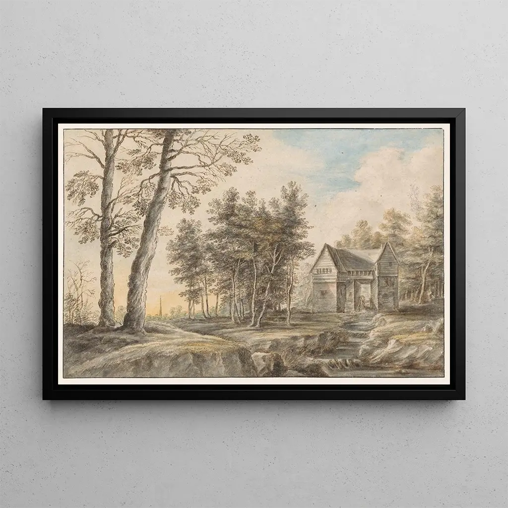 Paysage avec un moulin à agua : una oda a la serenidad bucólica La impresión artística de Paysage avec un moulin à agua de Lucas van Uden evoca un mundo pacífico donde el tiempo parece detenerse. Los tonos suaves de verde y azul, mezclados con toques de marrón, crean una atmósfera tranquila y relajante. El molino, majestuosamente situado junto al agua, se convierte en el punto focal de esta escena bucólica, rodeado de vegetación exuberante y una luz suave que filtra a través de los árboles. La técnica de pintura al óleo permite reproducir las texturas de los elementos naturales con gran delicadeza, invitando al espectador a sumergirse en esta tranquilidad. Lucas van Uden : un virtuoso del paisaje flamenco Lucas van Uden, activo en el siglo XVII, es un pintor flamenco reconocido por sus paisajes encantadores. Formado en la tradición de los maestros flamencos, supo desarrollar un estilo distintivo, caracterizado por composiciones armoniosas y una atención especial a los detalles naturales. Sus obras, a menudo inspiradas en el campo flamenco, reflejan una profunda admiración por la belleza del mundo rural. Como miembro de la guilda de Saint-Luc en Amberes, dejó un legado duradero en el arte del paisaje, influyendo en muchos artistas de su tiempo. Una adquisición decorativa con múltiples ventajas Esta impresión artística de Paysage avec un moulin à agua es una elección decorativa perfecta para aportar un toque de naturaleza a su interior. Ya sea en una sala de estar, una oficina o un dormitorio, sabrá crear un ambiente relajante y cálido. La calidad de impresión garantiza una fidelidad notable a los colores y detalles de la obra original, rindiendo homenaje al arte de Lucas van Uden. Con su atractivo estético, este cuadro se convierte no solo en un elemento decorativo, sino también en una fuente de inspiración y tranquilidad para su espacio vital.