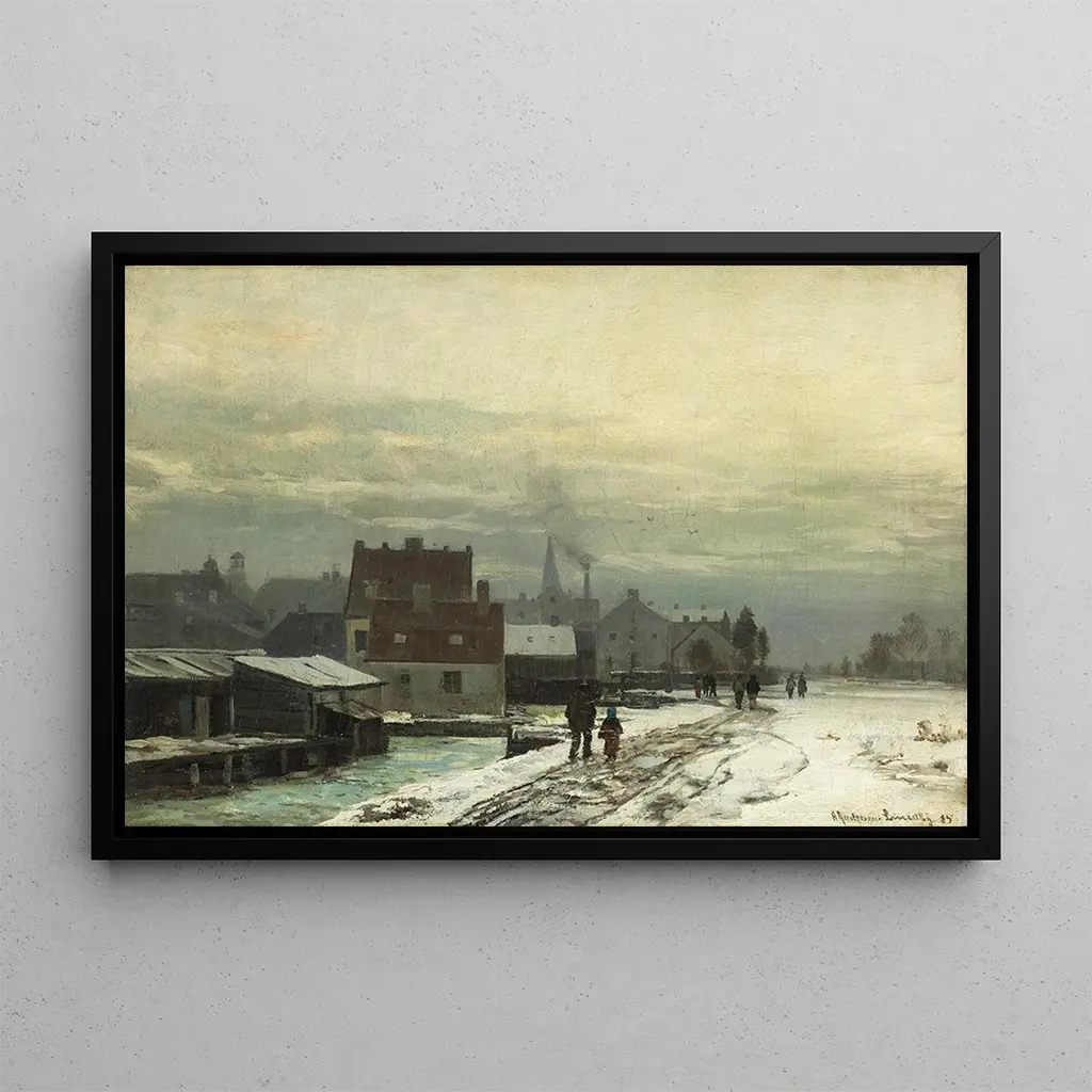 Paysaje de invierno : una poesía de la naturaleza En "Paisaje de invierno", Anders Andersen-Lundby nos transporta al corazón de una escena invernal llena de magia. La tela, bañada en una luz suave, destaca un paisaje nevado donde los copos brillan bajo un cielo claro. Los árboles, cubiertos por una fina capa de nieve, se alzan con gracia, mientras que un arroyo, parcialmente helado, serpentea a través de la composición. La técnica de Lundby, que combina realismo e impresionismo, crea una atmósfera tranquila y contemplativa, invitando al espectador a escapar a este universo invernal encantador. Anders Andersen-Lundby : un virtuoso del paisaje escandinavo Anders Andersen-Lundby, pintor danés del siglo XIX, es famoso por sus paisajes de una gran delicadeza. Influenciado por el romanticismo y el impresionismo, supo capturar la belleza de las estaciones con una sensibilidad única. Su obra refleja una profunda admiración por la naturaleza, que representa con una atención minuciosa a los detalles. "Paisaje de invierno" ilustra perfectamente su talento para evocar la atmósfera de un momento fugaz, rindiendo homenaje a la belleza escandinava. Su capacidad para jugar con la luz y los colores lo ha convertido en un artista respetado y apreciado en el mundo del arte. Una adquisición decorativa con múltiples ventajas La impresión artística de "Paisaje de invierno" es una elección ideal para embellecer su interior. Ya sea en una sala de estar, una oficina o un dormitorio, esta tela aporta un toque de frescura y tranquilidad. Su paleta de colores suaves y sus motivos relajantes se integran armoniosamente en diversos estilos de decoración, desde el tradicional hasta el moderno. La calidad de la impresión artística garantiza una fidelidad excepcional a la obra original, permitiendo disfrutar de la belleza de Lundby a diario. Al añadir esta obra a su colección, crea un espacio acogedor e inspirador, celebrando al mismo tiempo el arte escandinavo.